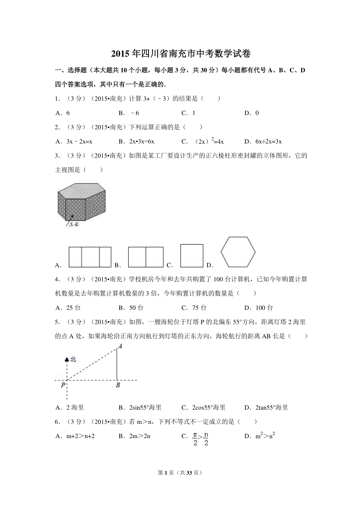 下载2015年四川省南充市中考数学试题及解析PDF格式或doc