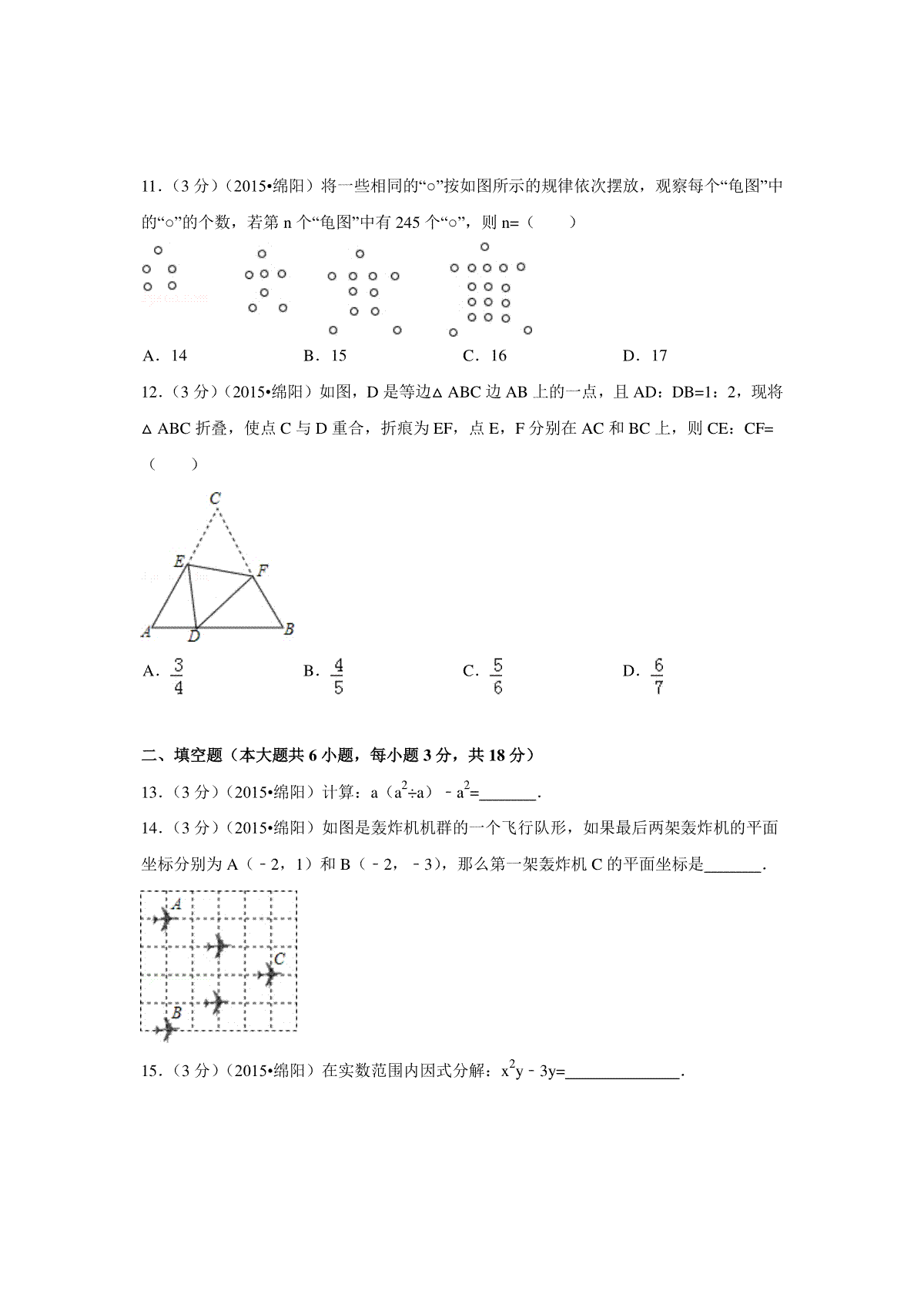 2015年四川省绵阳市中考数学试卷(含解析版)
