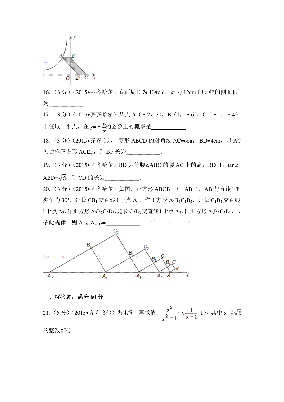 一、2015年黑龙江省黑河市、齐齐哈尔市、大兴安岭中考数学试卷(含解析版)