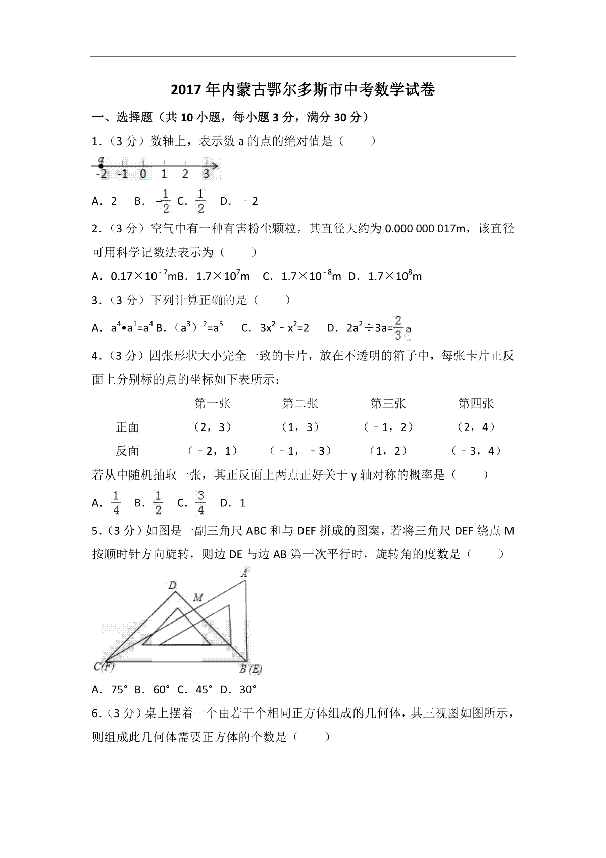 一、2017年内蒙古鄂尔多斯市中考数学试卷含答案解析