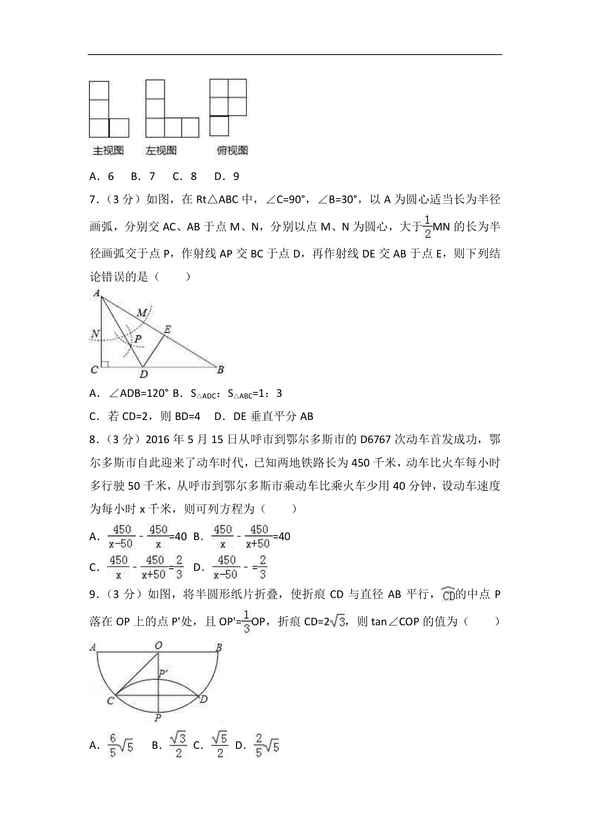 4.2017年内蒙古呼和浩特市中考数学试卷(含解析版)