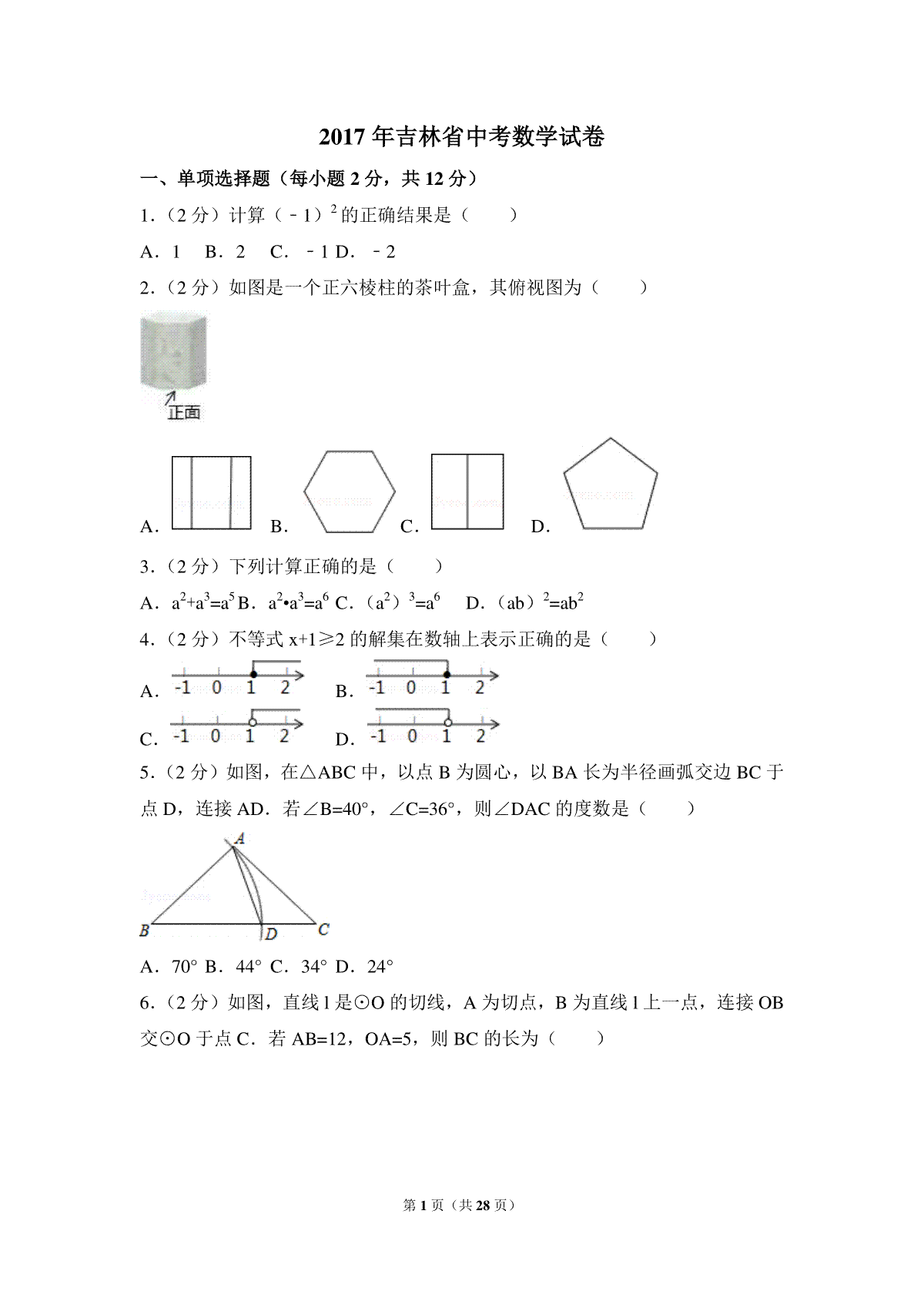 下载2017年吉林省中考数学试卷(含解析版)PDF格式或doc