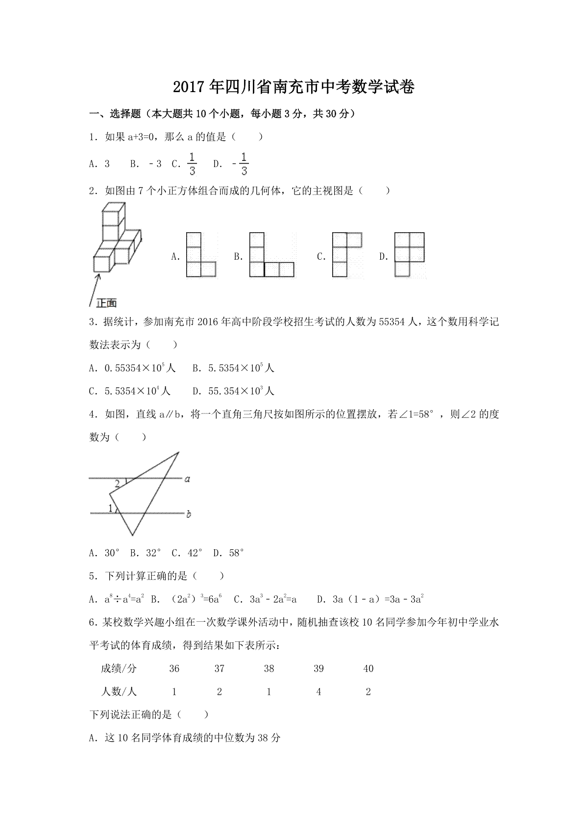 1.2017年四川省南充市中考数学试卷(含解析版)