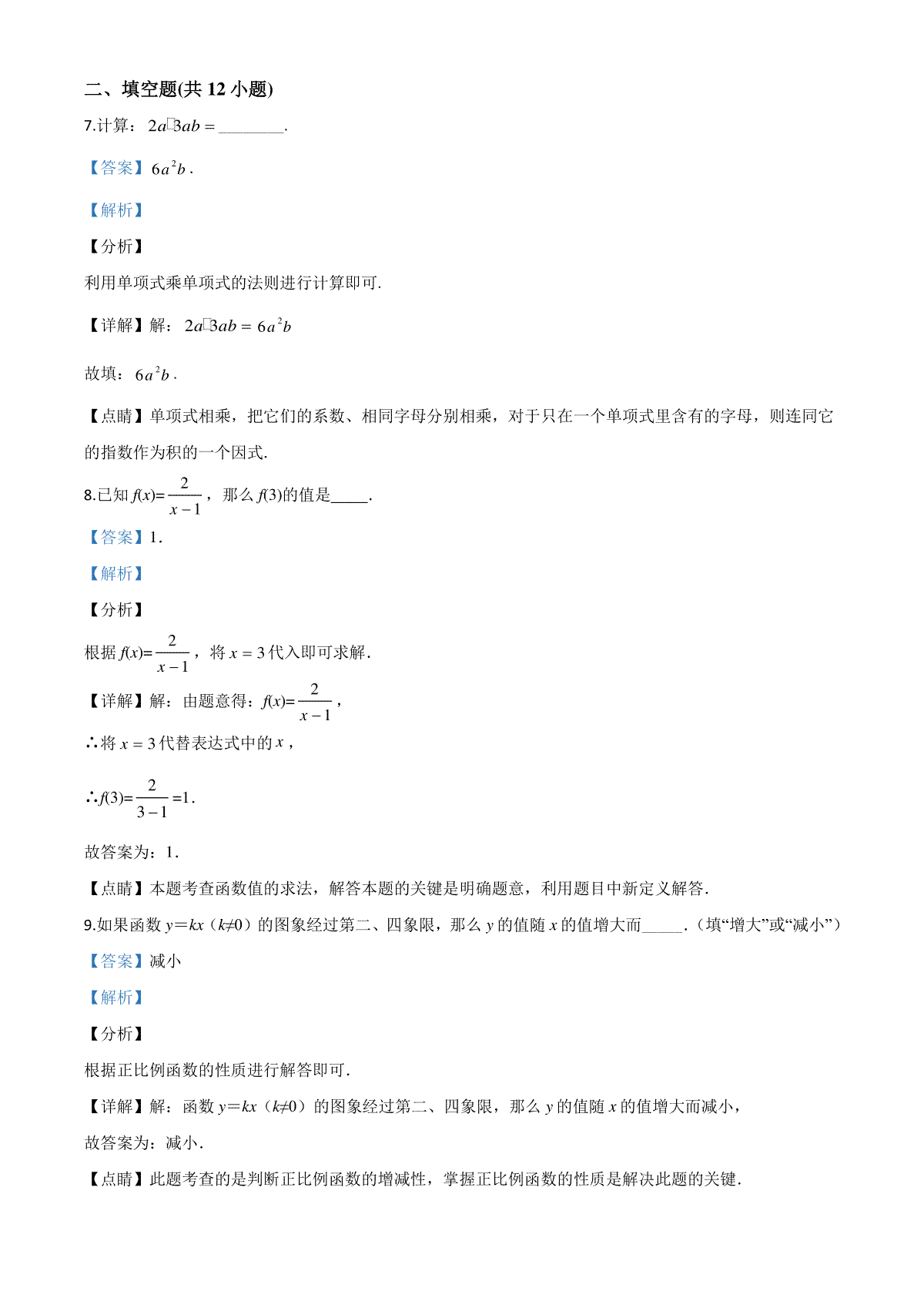 一、精品解析:上海市2020年中考数学试题(解析版)