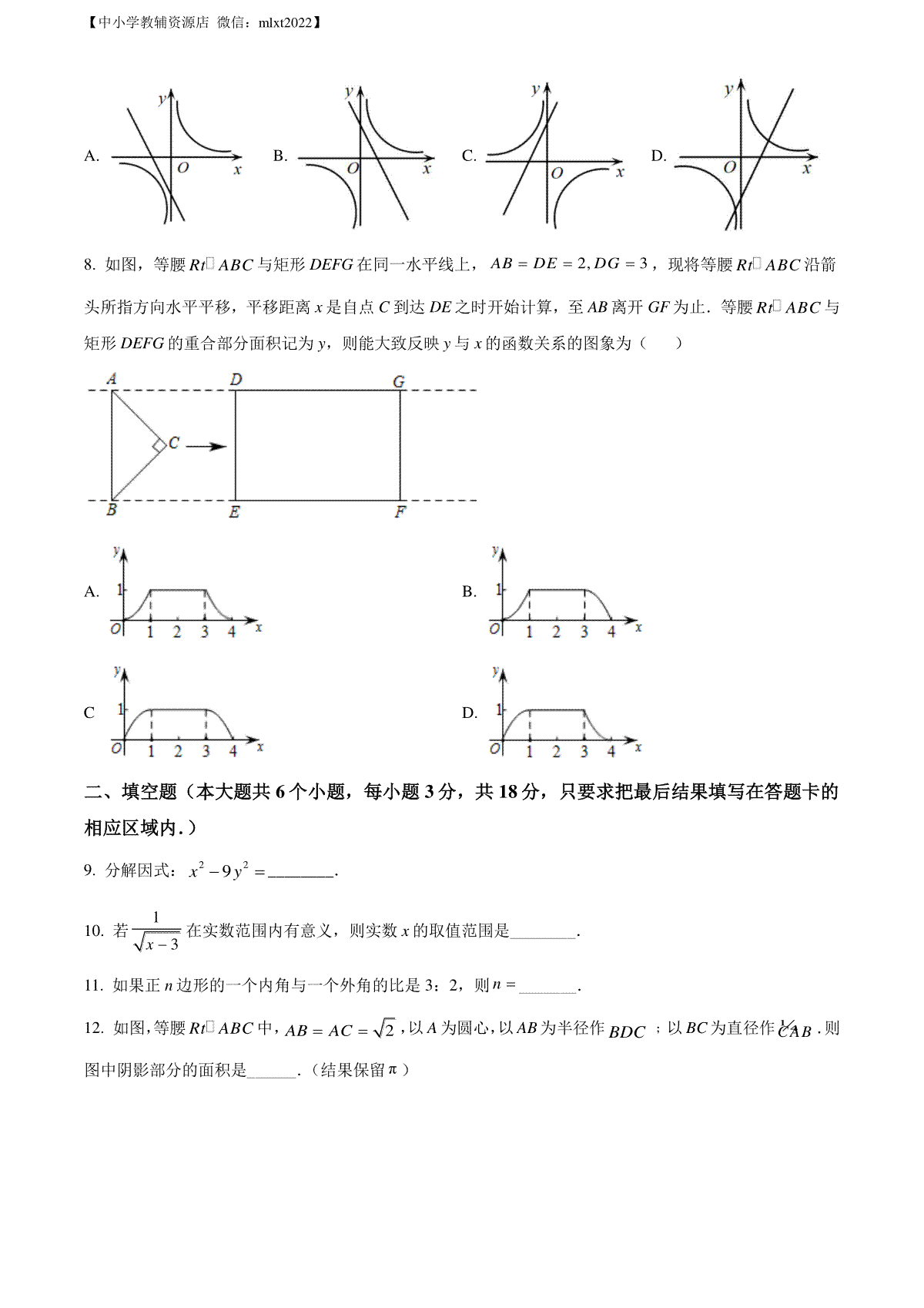 精品解析:2022年山东省菏泽市中考数学真题 (原卷版)