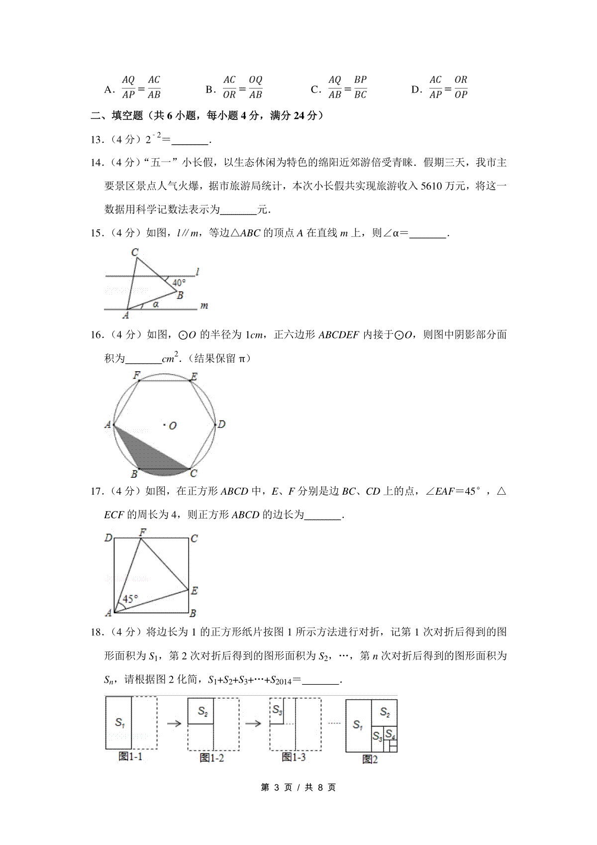 下载2014年四川省绵阳市中考数学试卷(学生版) PDF格式或doc