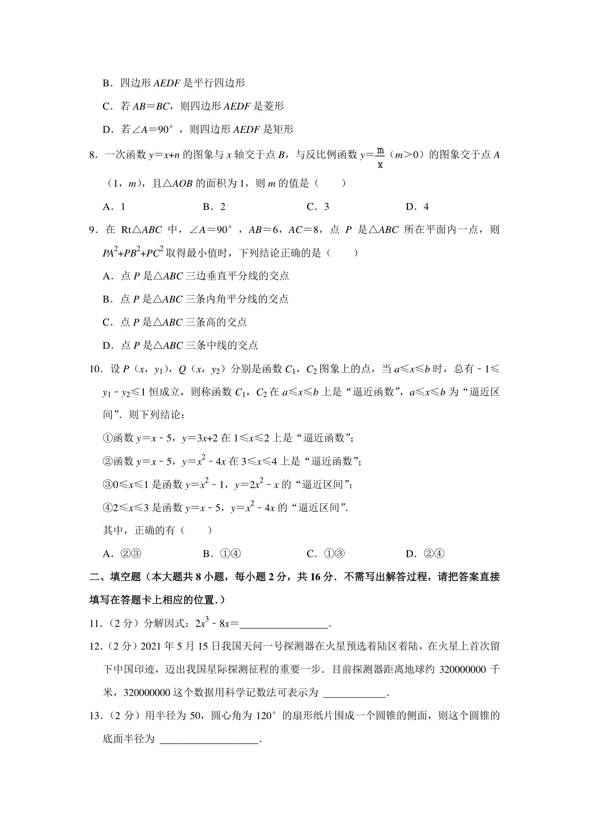 2.2021年江苏省无锡市中考数学真题试卷 解析版