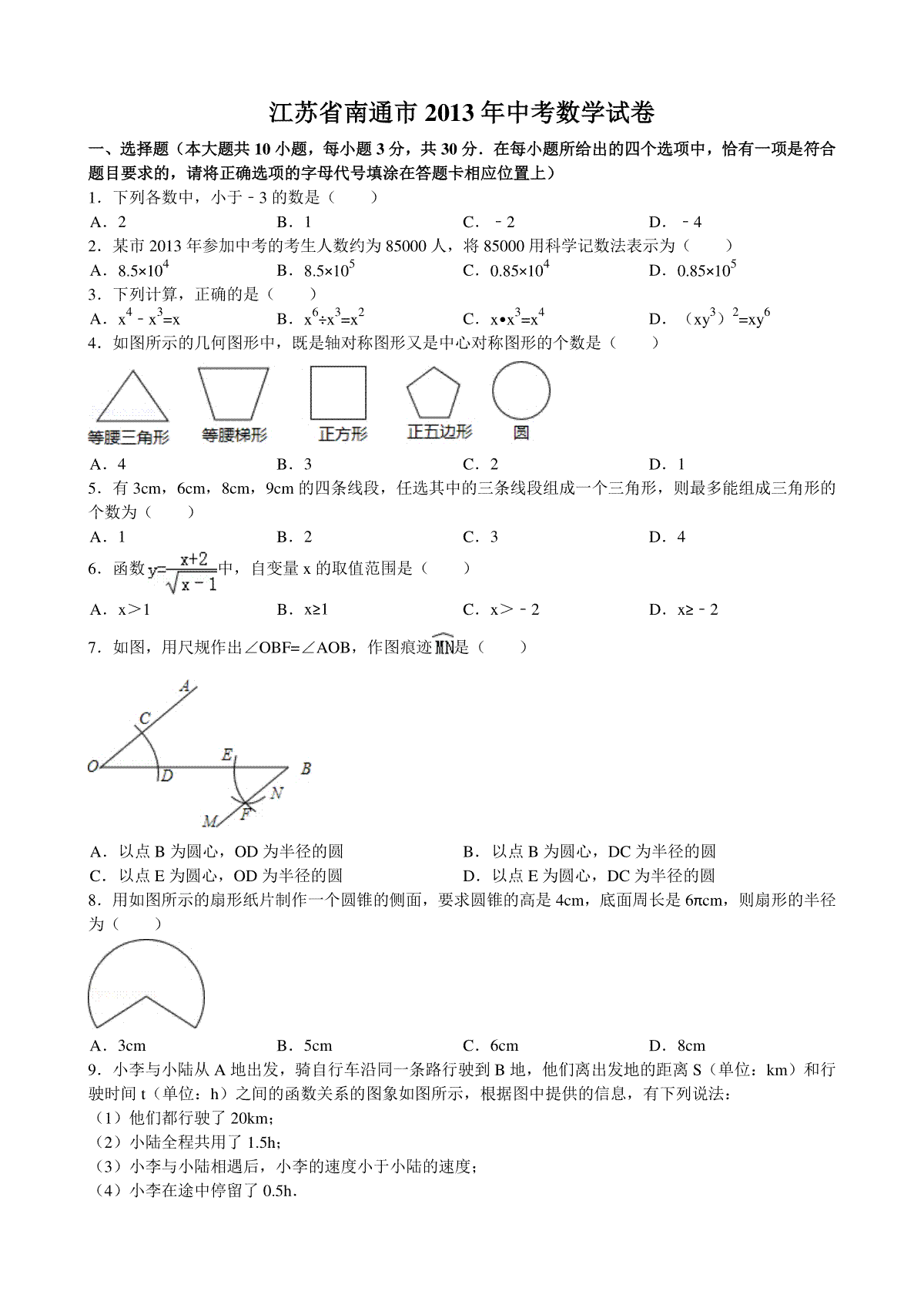 如果你想下载2013年江苏省南通市中考数学试题及答案DOC或PDF版,请点击本文末链接!