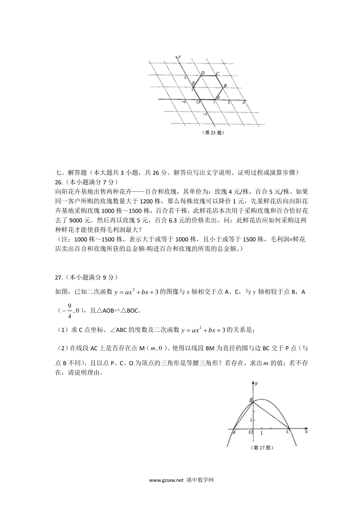 2.2009年常州市中考数学试题及答案