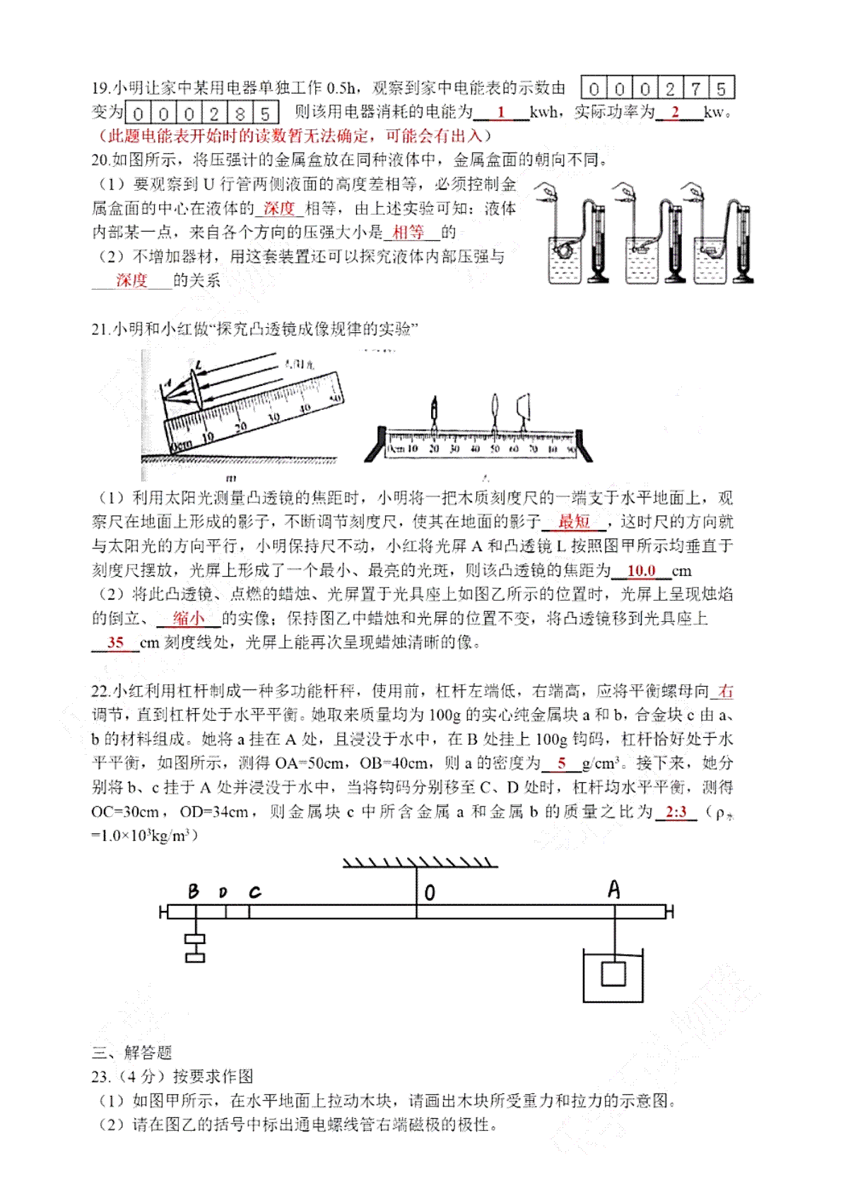 四川省凉山州2019年中考物理真题试题(扫描版,无答案)