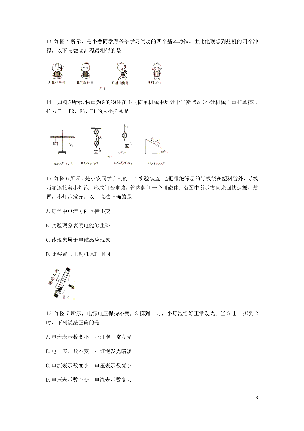 四川省凉山州2019年中考物理真题试题(扫描版,无答案)