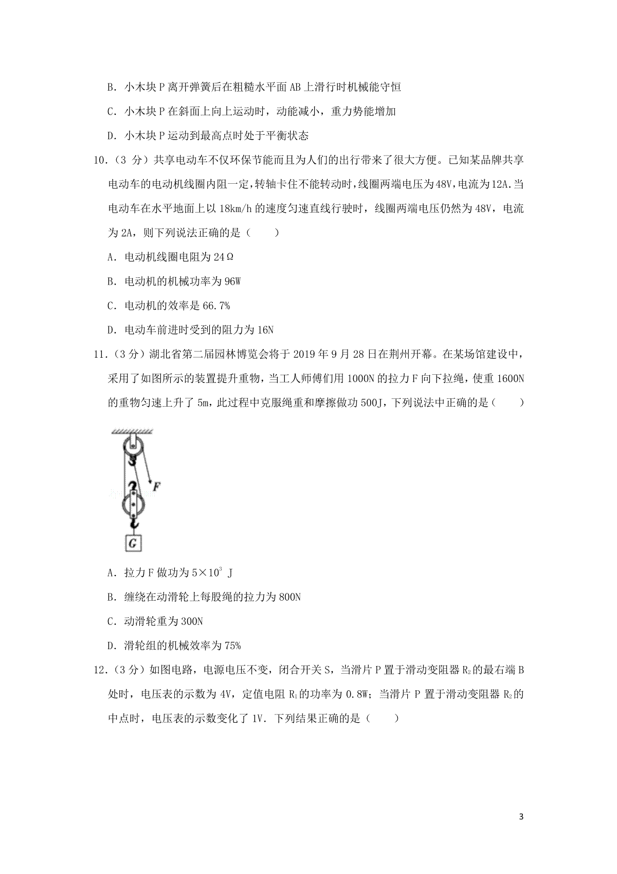 3.湖北省武汉市2019年中考物理真题试题(含解析)