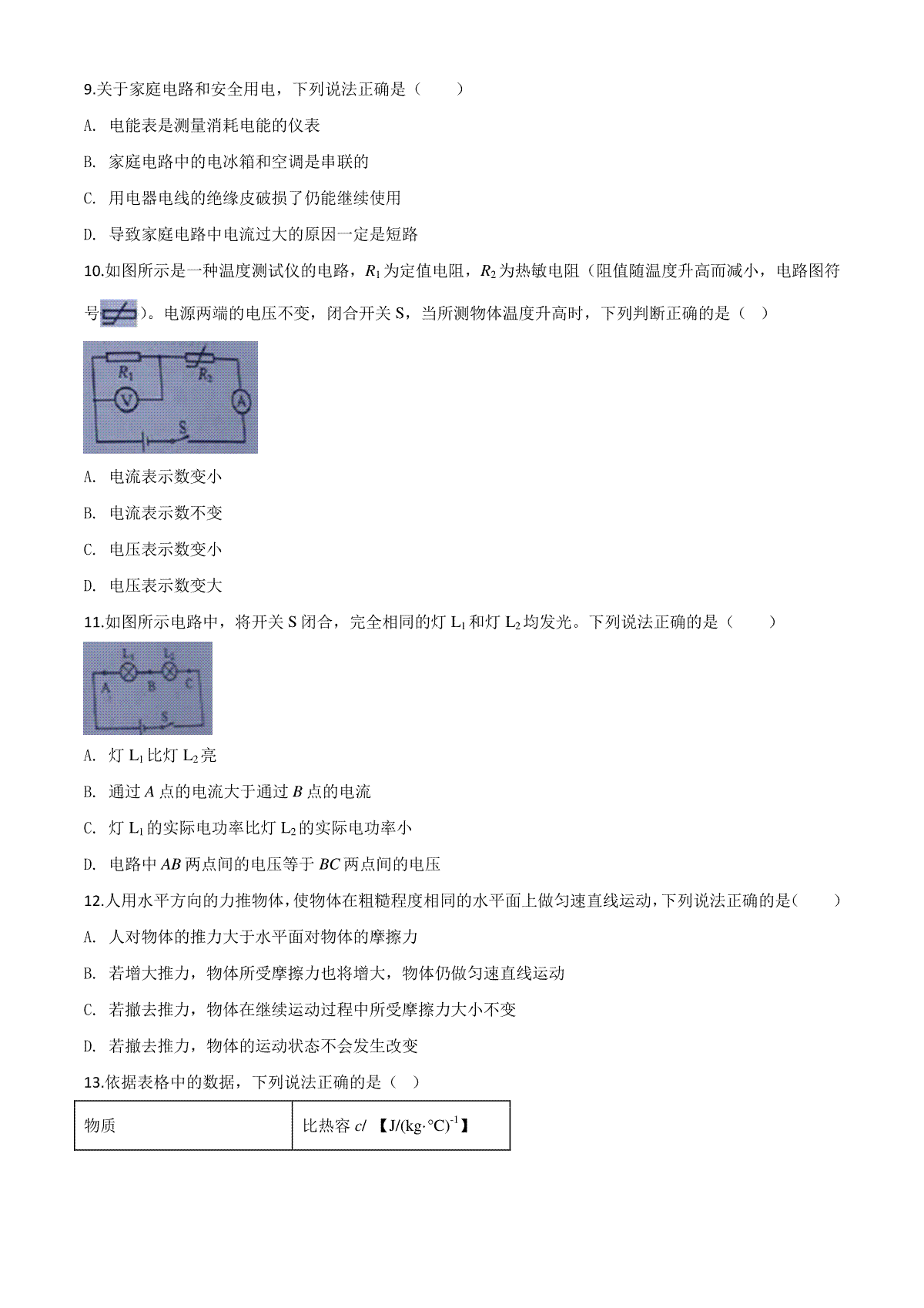 7.精品解析:2020年内蒙古呼伦贝尔市中考物理试题(原卷版)