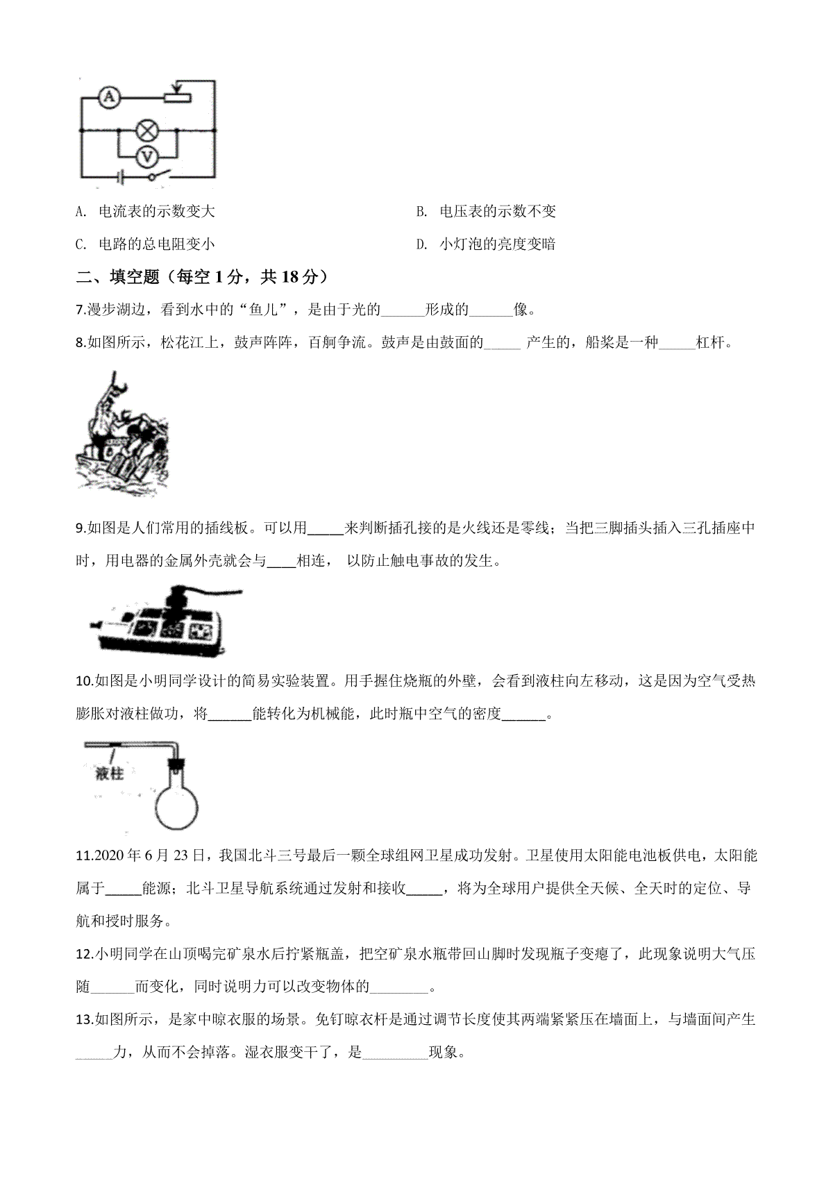 精品解析:2020年吉林省中考物理试题(原卷版)
