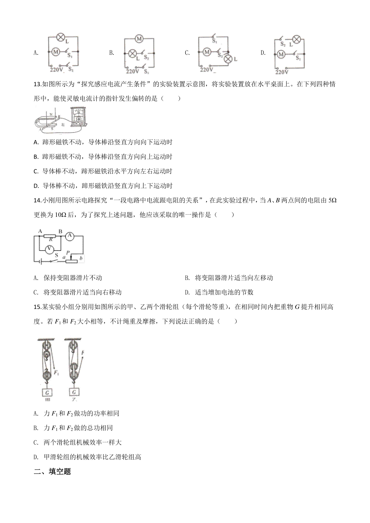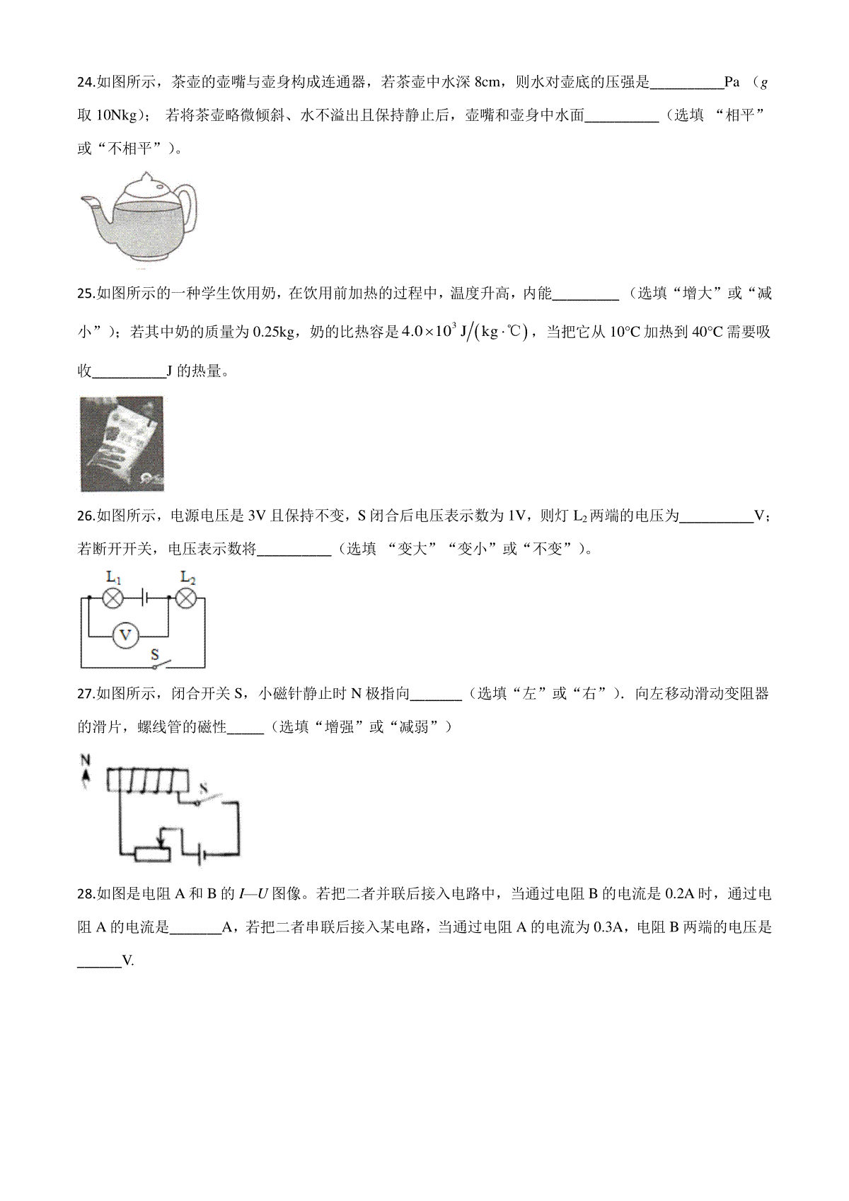 一、精品解析:2020年四川省甘孜州中考物理试题(初中毕业暨高中阶段学校招生统一考试物理题)(原卷版)
