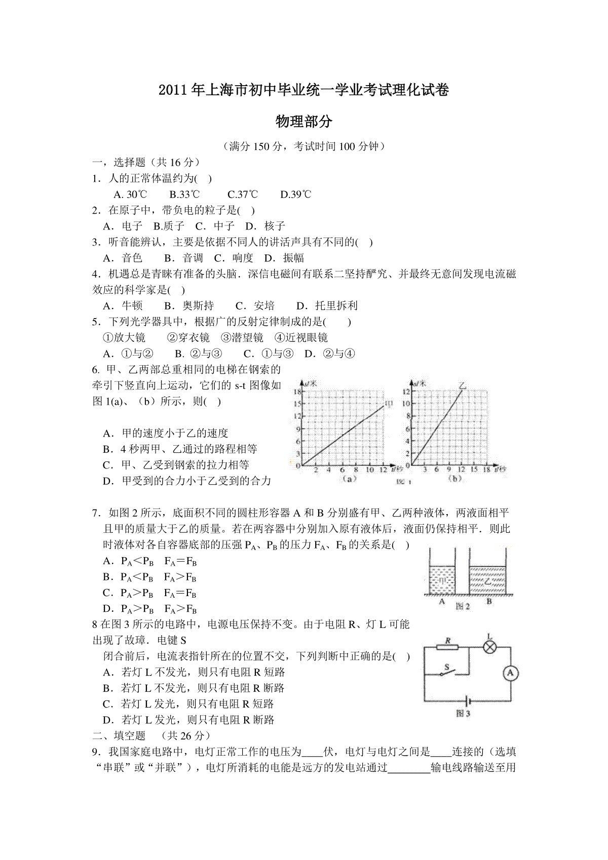 2011年上海市中考物理试题及答案(Word)于近期开考,本次考试对考生对知识的掌握参考价值大,为了方便大家复习掌握错题!小编在下文为大家准备了2011年上海市中考物理试题及答案(Word)试卷及答案解析详情,仅供考生参考。