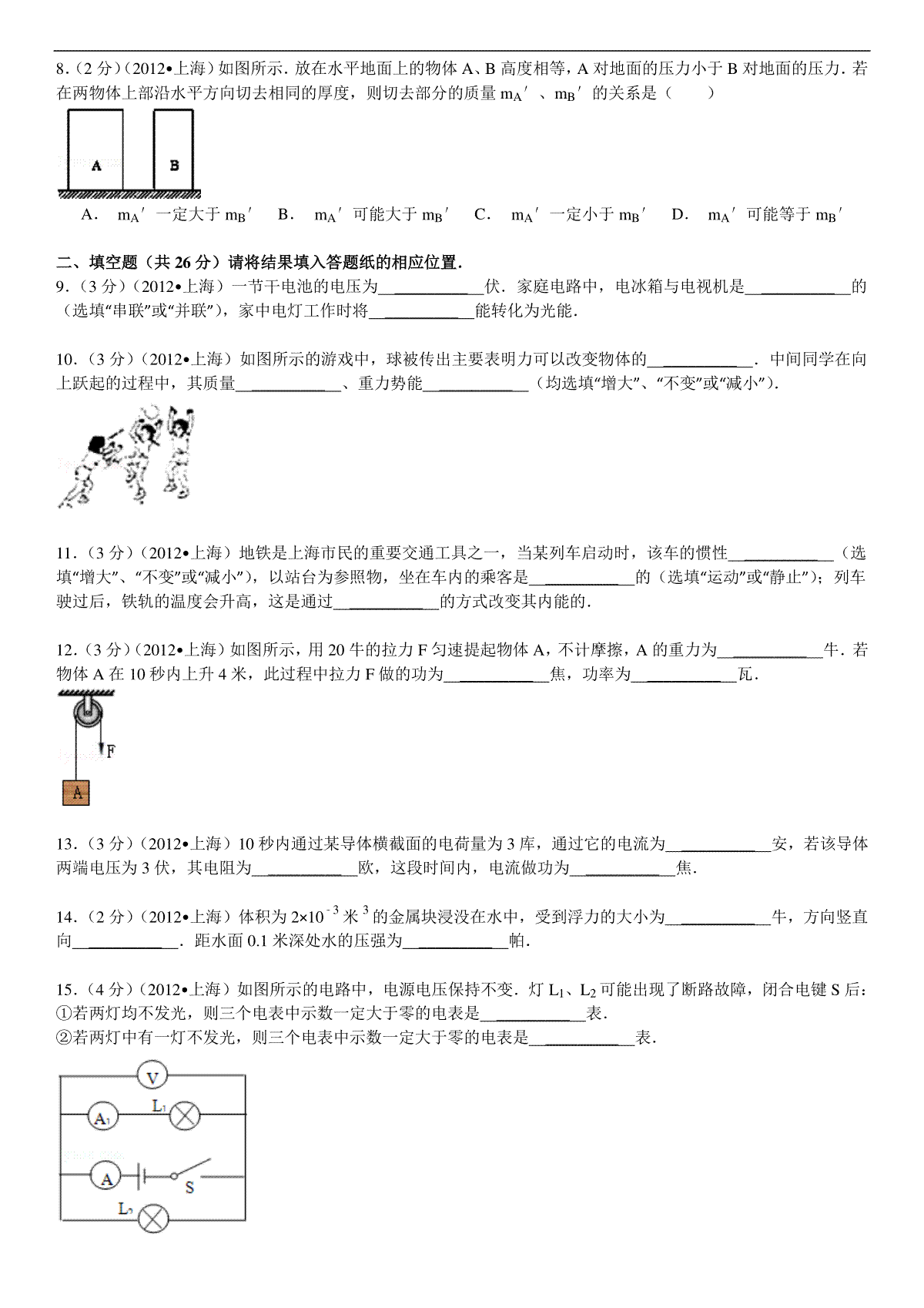 如果你想下载2012年上海市中考物理试题及答案(Word)DOC或PDF版,请点击本文末链接!