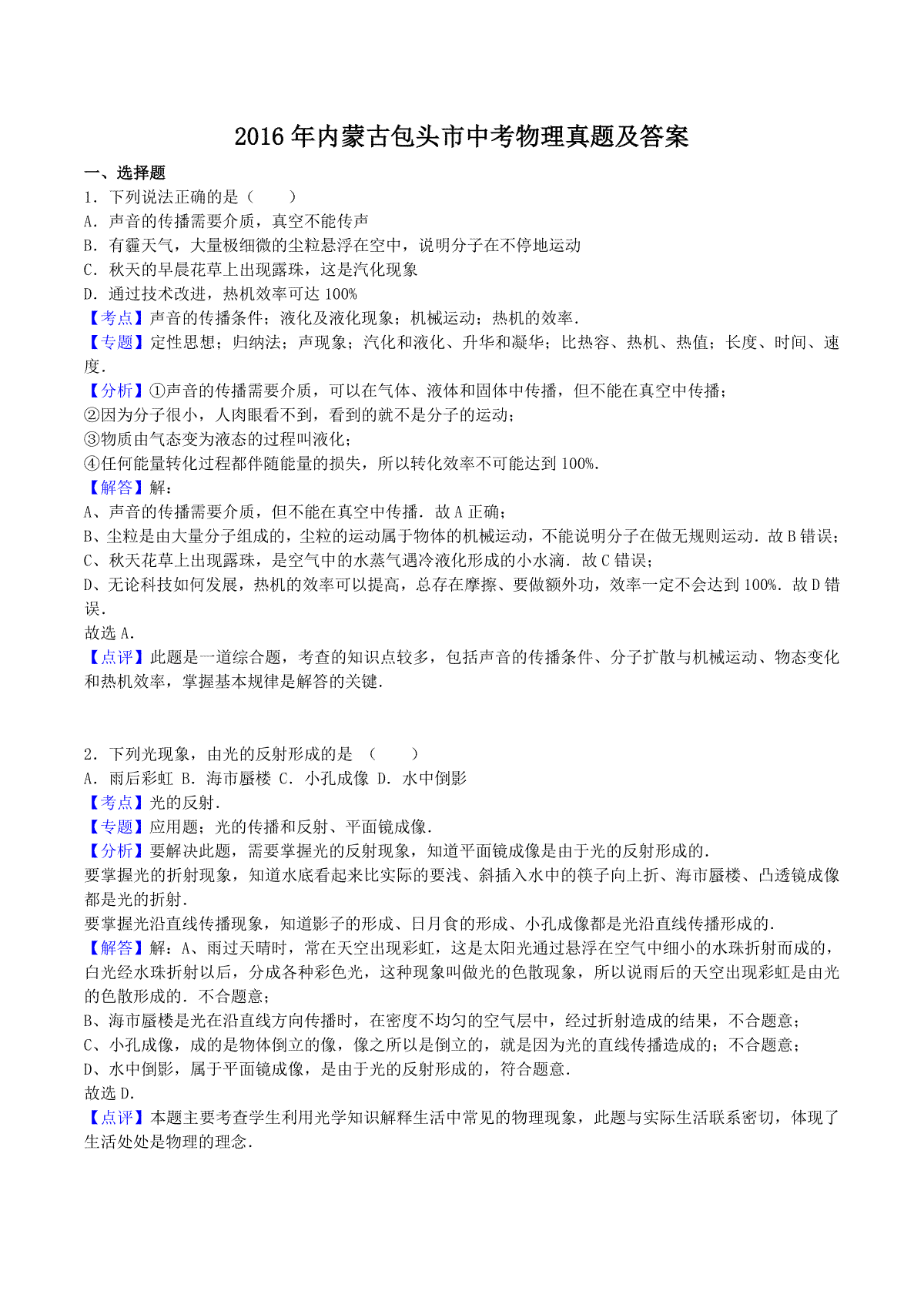 下载2016年内蒙古包头市中考物理真题及答案PDF格式或doc
