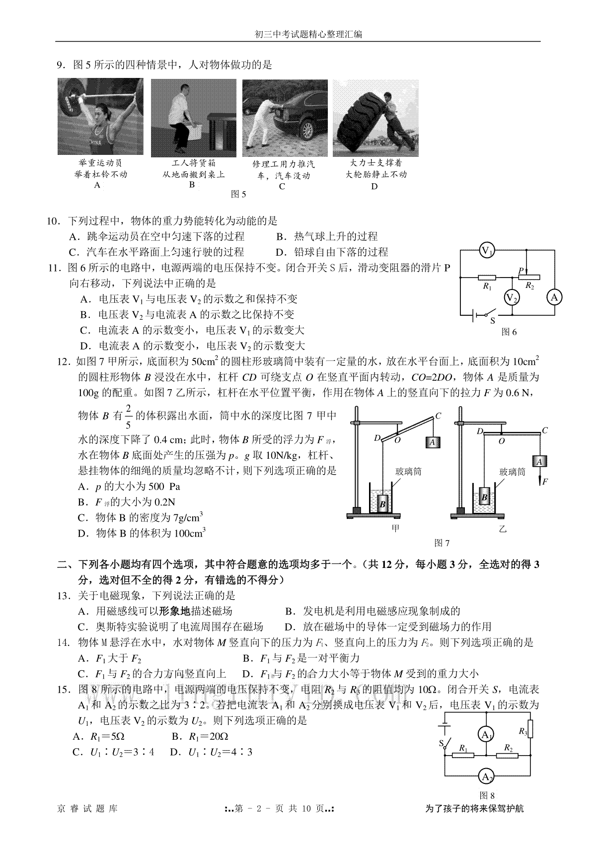 下载2008年北京市中考物理试题及答案PDF格式或doc
