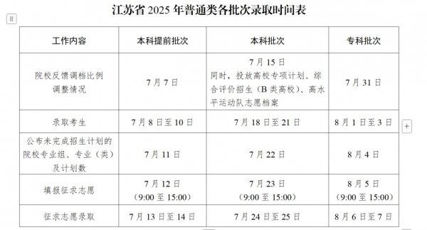 根据江苏省教育考试院公布的录取时间安排,2025年江苏高考不同批次录取通知书发放时间预估如下: