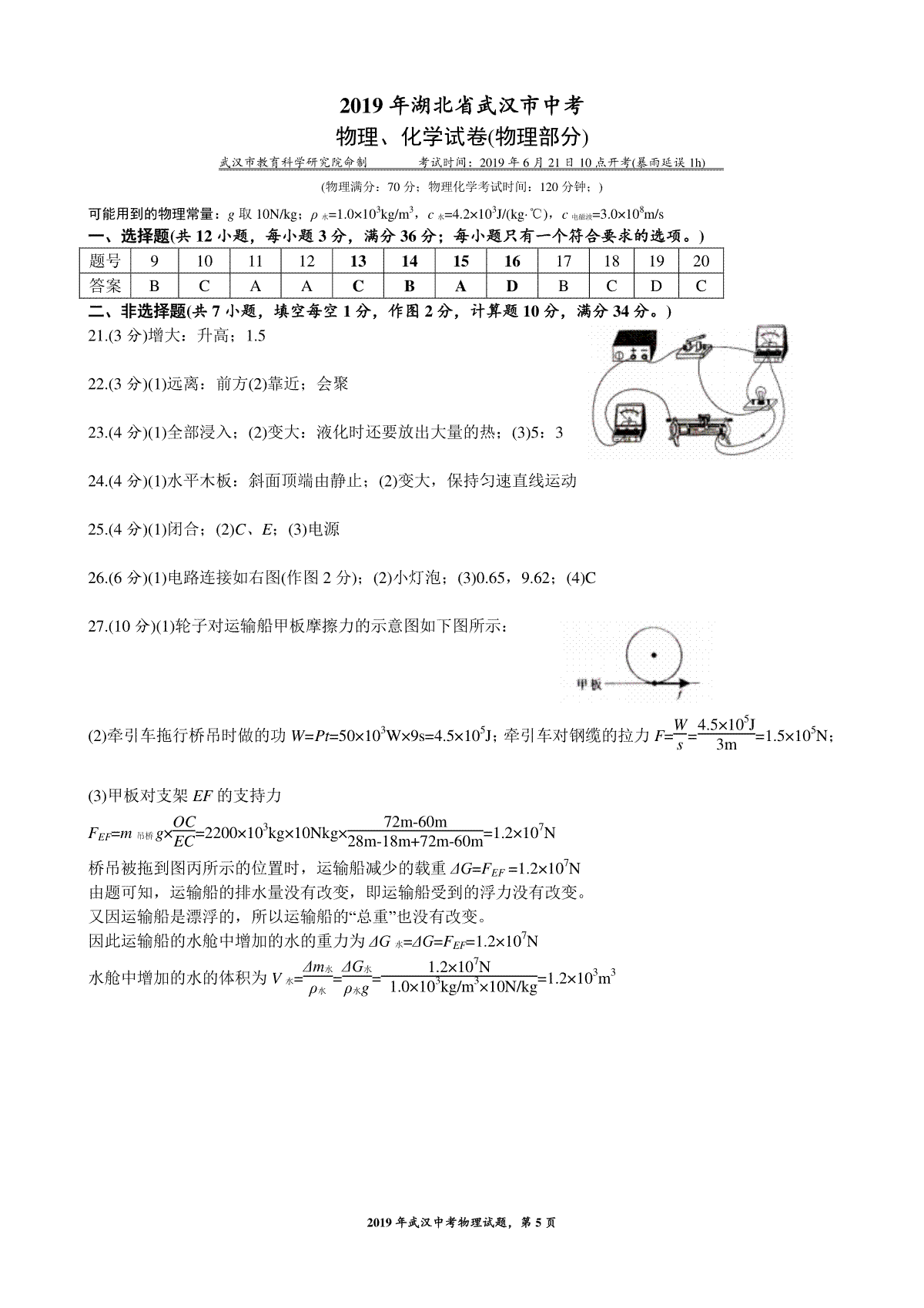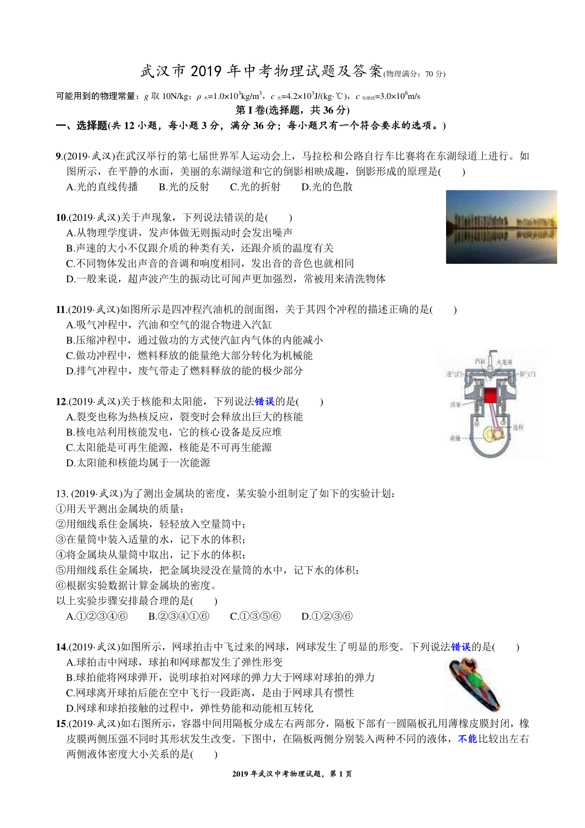 下载2019年湖北省武汉市中考物理试题及答案PDF格式或doc