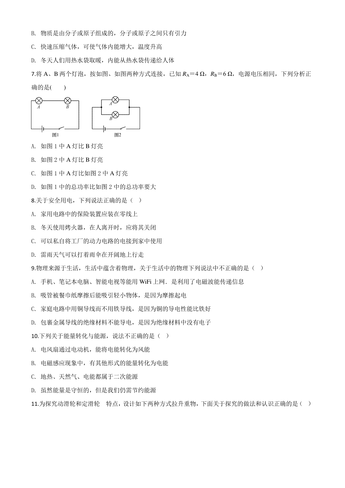 4.2021年湖北省黄石市中考理综物理试题(原卷版)