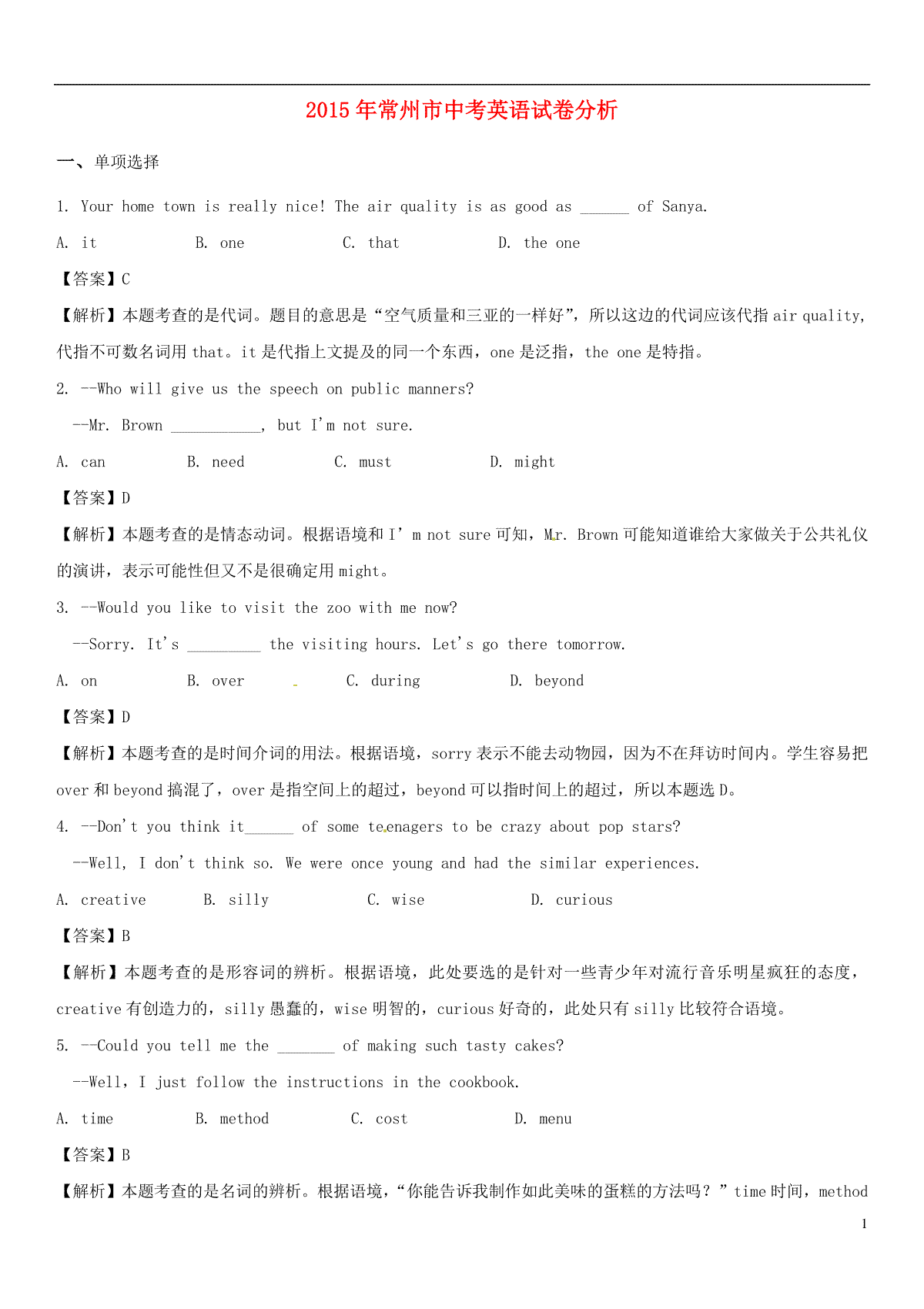 1.江苏省常州市2015年中考英语真题试题(含解析)
