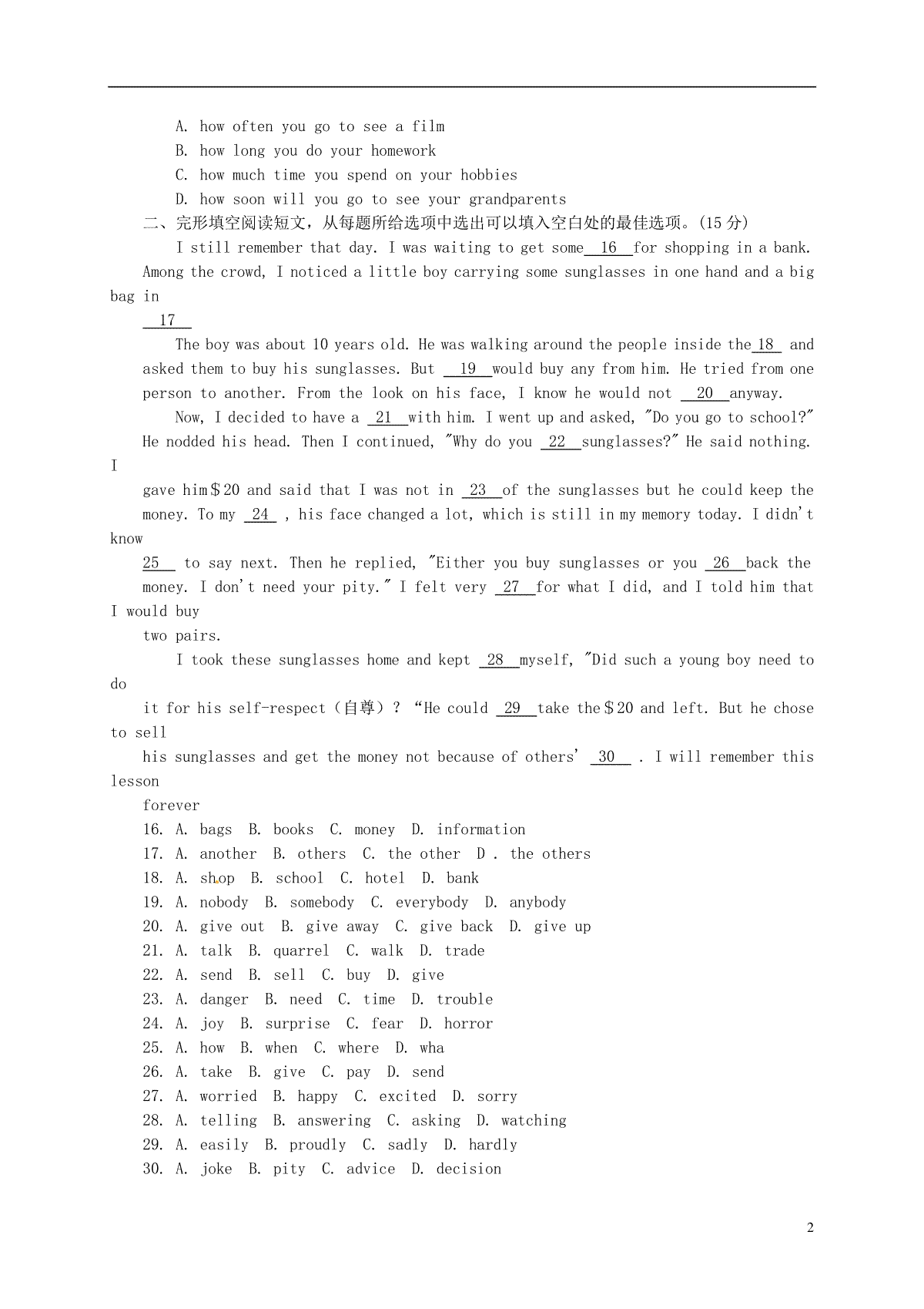 2.江苏省扬州市2015年中考英语真题试题(含答案)