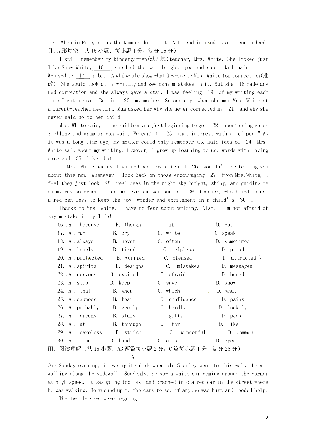 2015年中考真题精品解析 英语(上海卷)精编word版(原卷版)