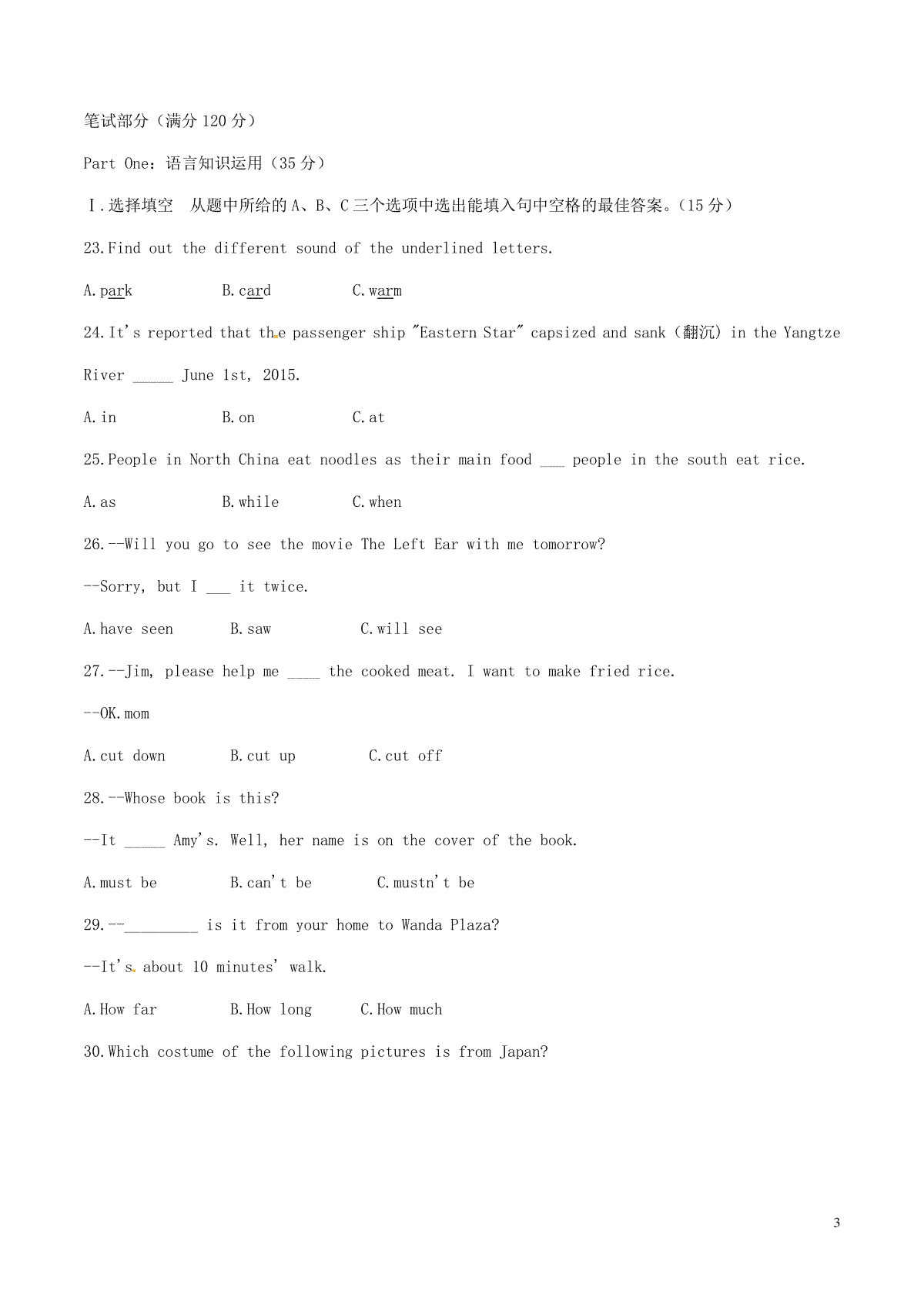 福建省莆田市2015年中考英语真题试题(含扫描答案)于近期开考,本次考试对考生对知识的掌握参考价值大,为了方便大家复习掌握错题!小编在下文为大家准备了福建省莆田市2015年中考英语真题试题(含扫描答案)试卷及答案解析详情,仅供考生参考。