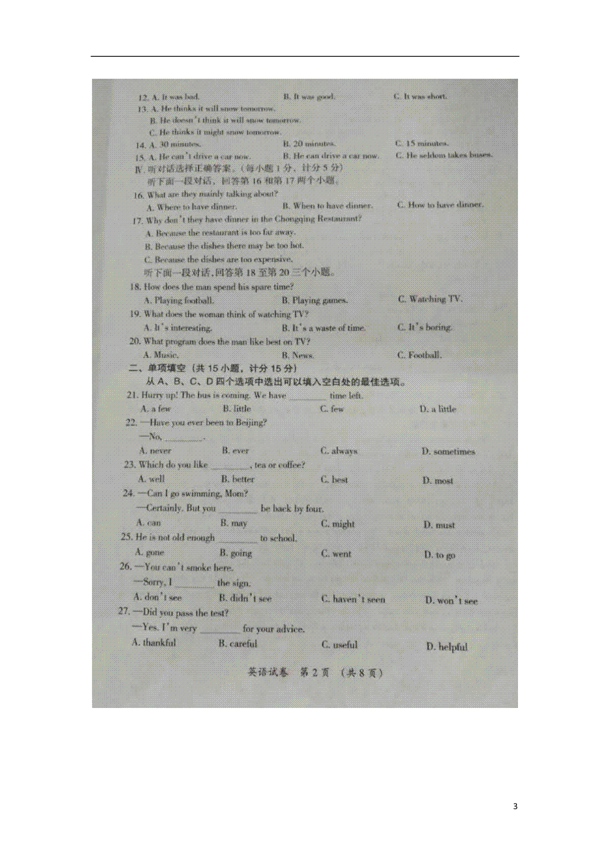 6.四川省广安市2016年中考英语真题试题(扫描版,含答案)