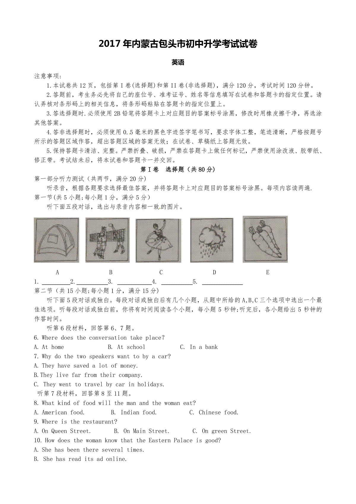 1.内蒙古包头市2017年中考英语试题(word版,含答案)