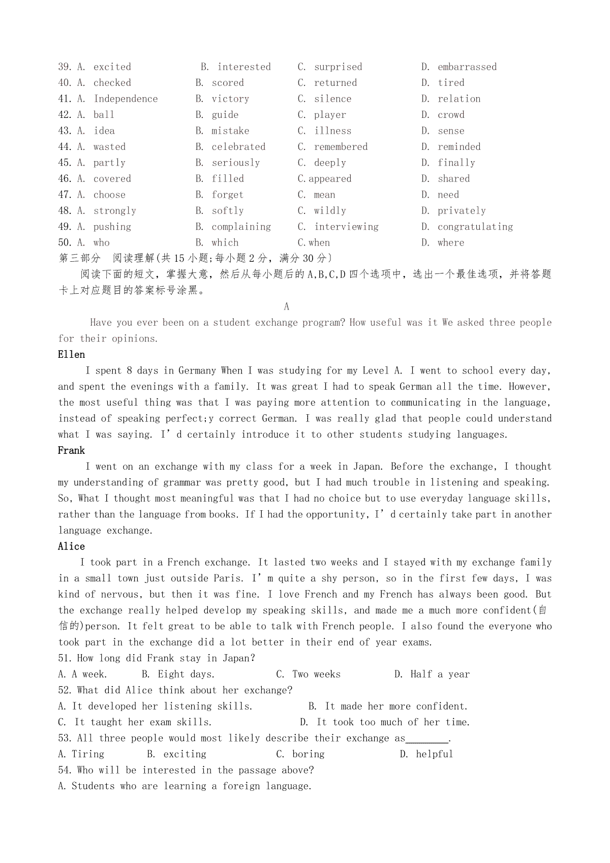 2015年中考真题精品解析 英语(上海卷)精编word版(原卷版)