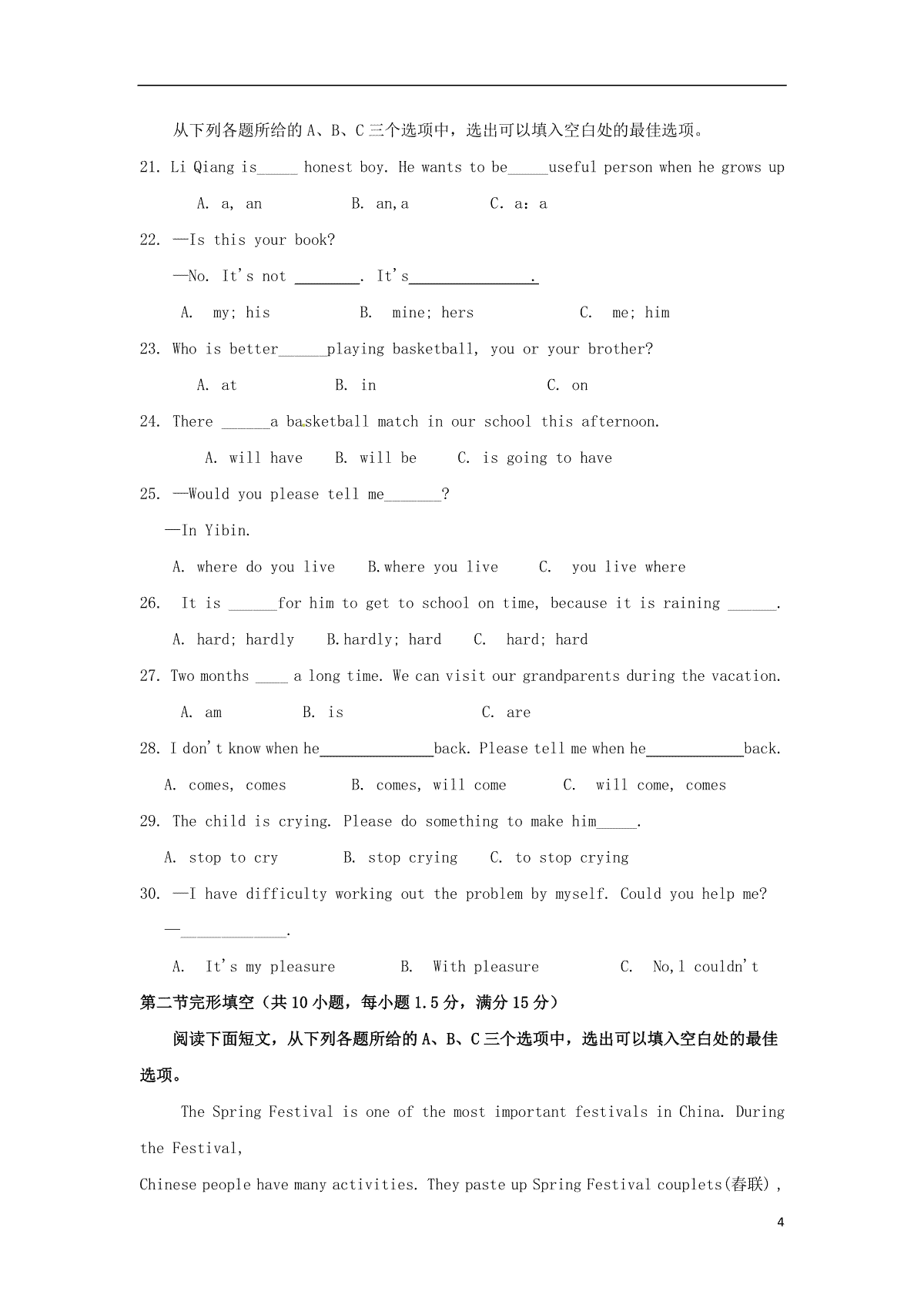 4.四川省凉山州2017年中考英语真题试题(扫描版,无答案)