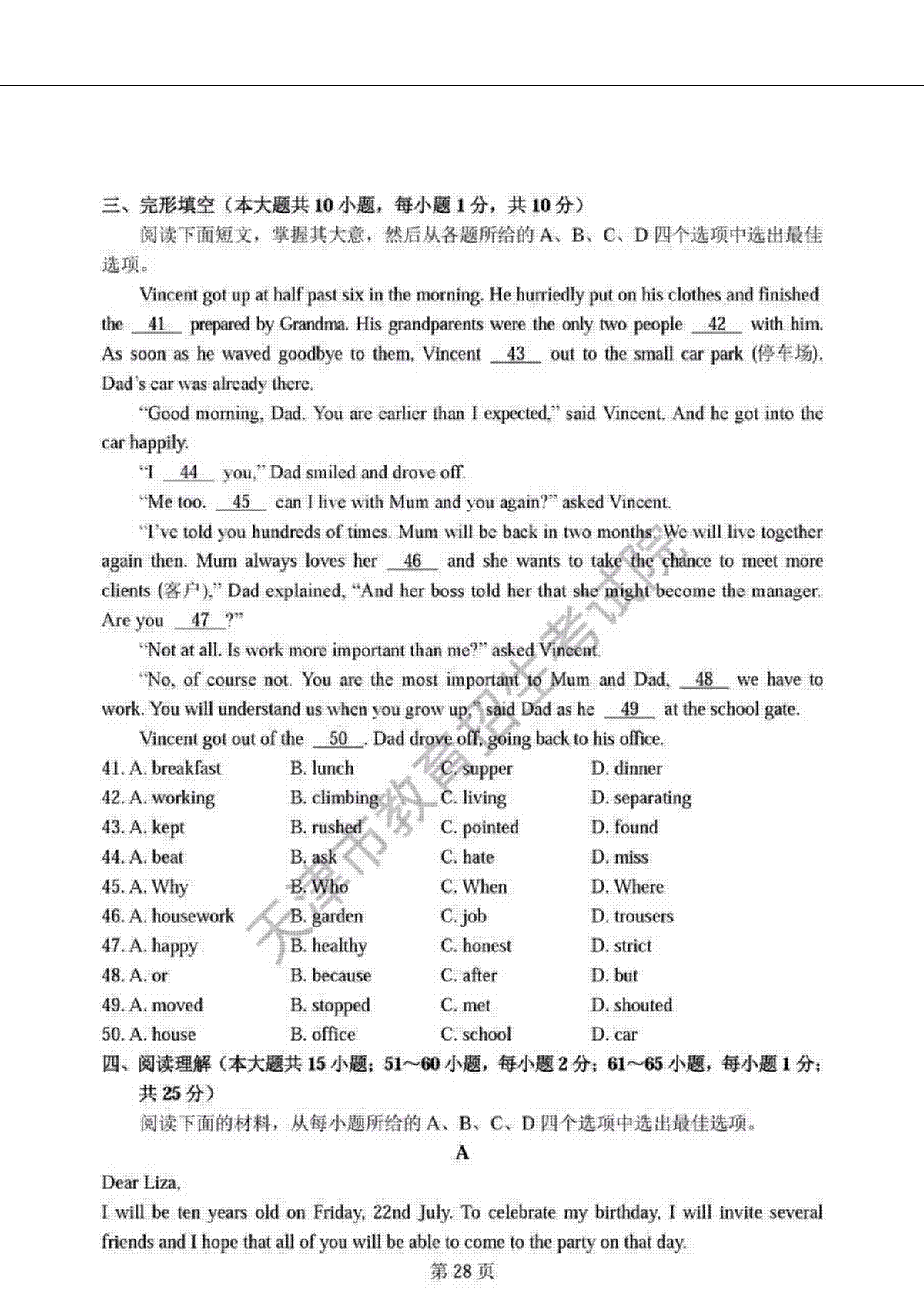 如果你想下载天津市2017年中考英语真题试题(扫描版,含答案)DOC或PDF版,请点击本文末链接!