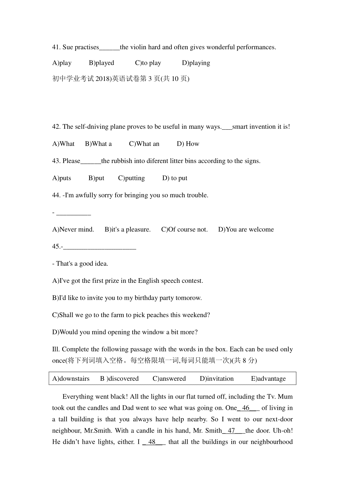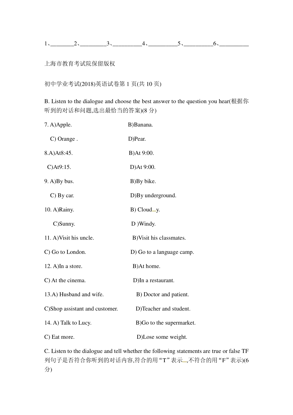 下载2018年上海中考英语试卷(word版,含答案)PDF格式或doc
