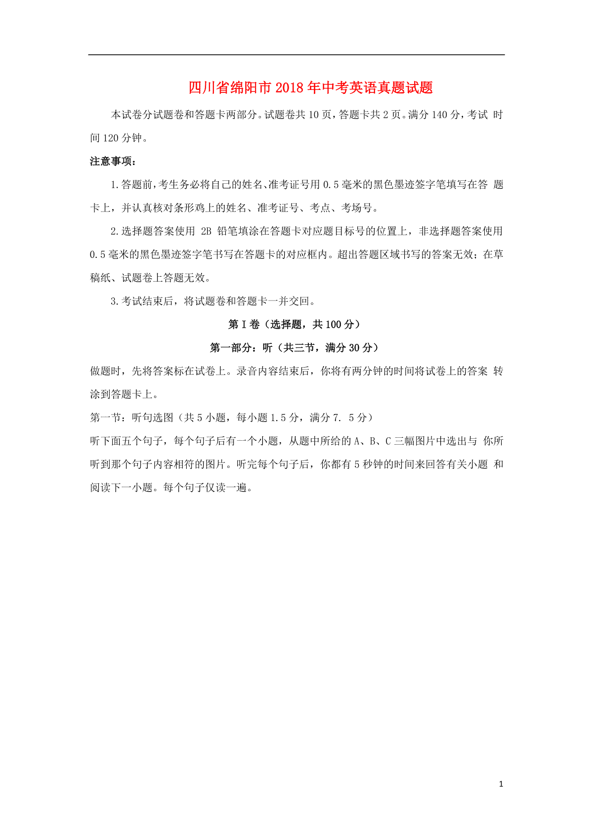 1.四川省绵阳市2018年中考英语真题试题(含答案)