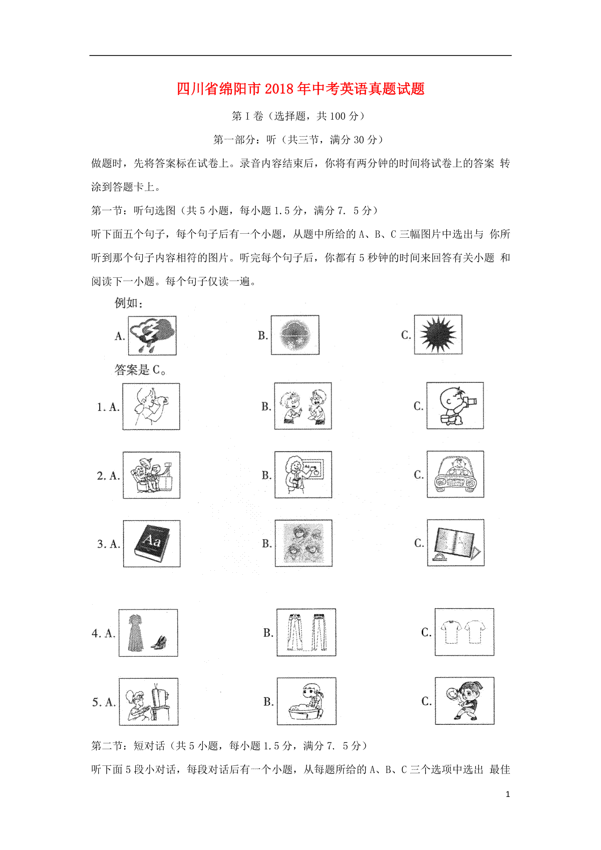 1.四川省绵阳市2018年中考英语真题试题(含解析)