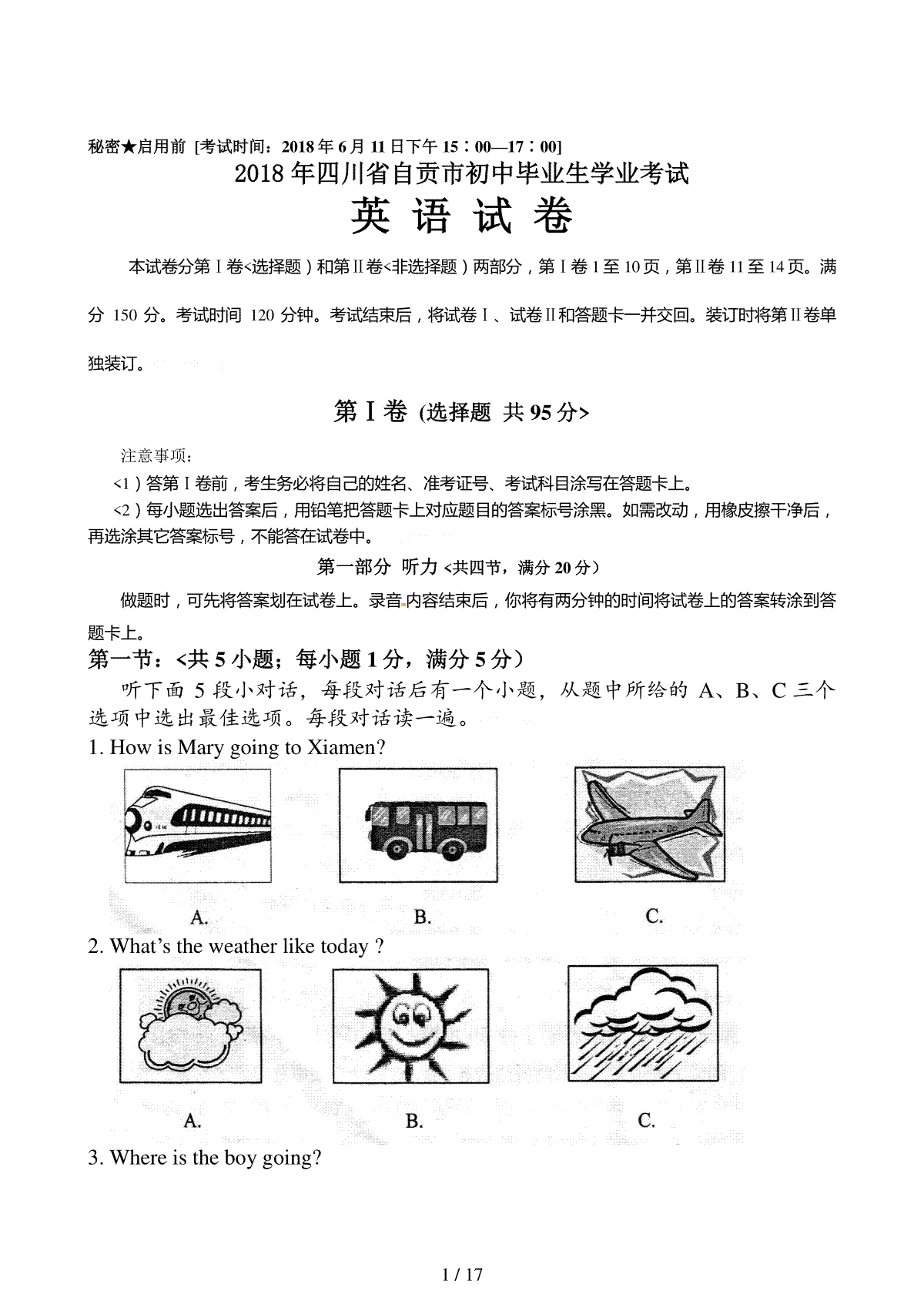 下载四川省自贡市2018年中考英语试题PDF格式或doc