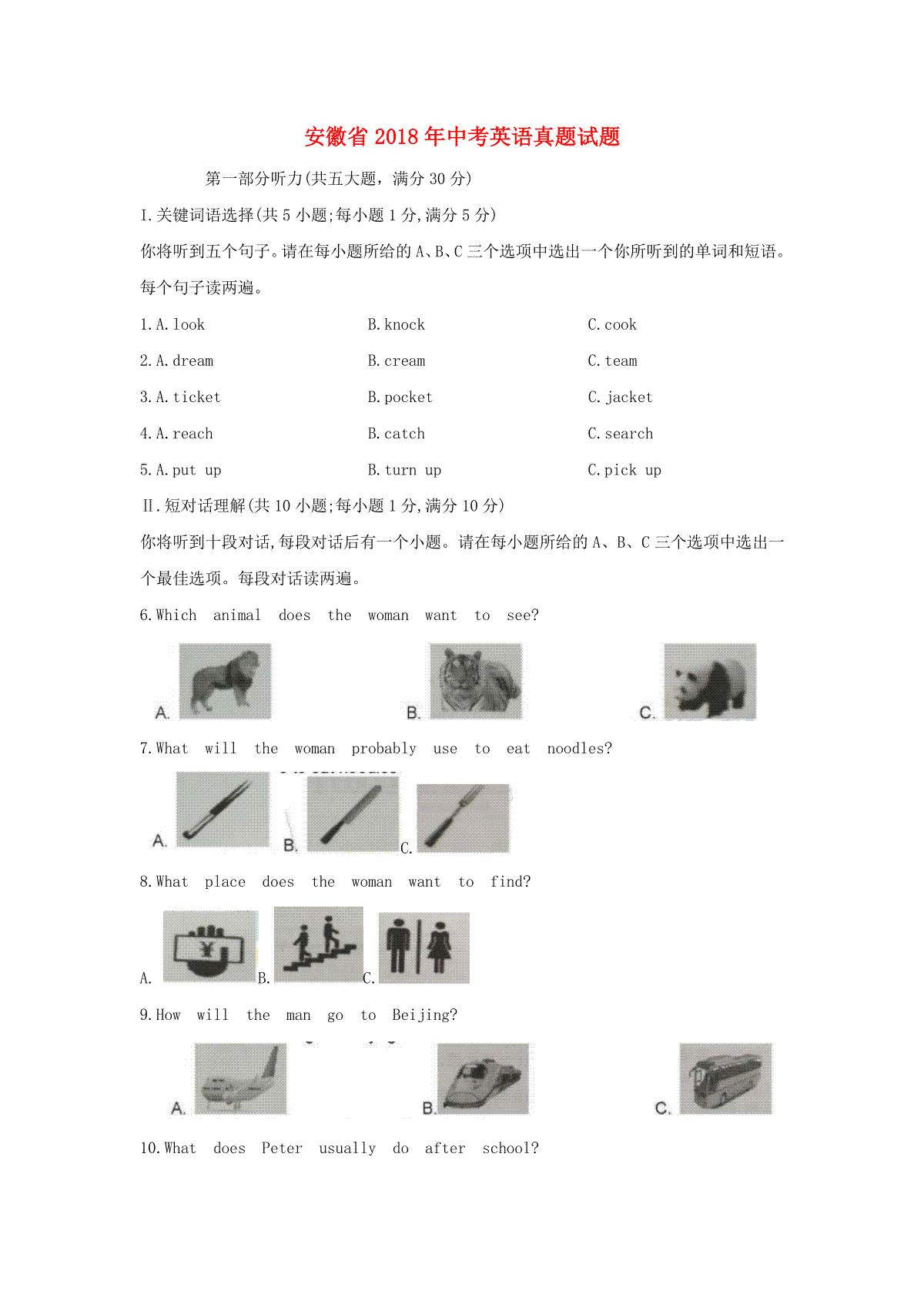 安徽省2018年中考英语真题试题(含答案)于近期开考,本次考试对考生对知识的掌握参考价值大,为了方便大家复习掌握错题!小编在下文为大家准备了安徽省2018年中考英语真题试题(含答案)试卷及答案解析详情,仅供考生参考。
