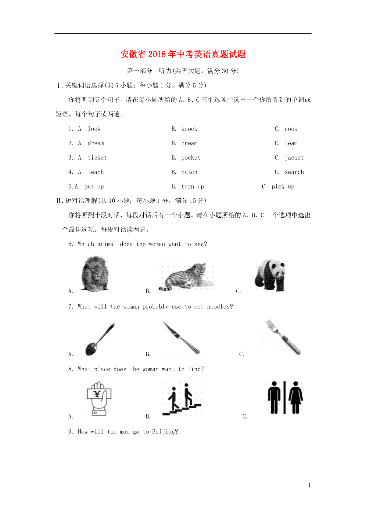 如果你想下载安徽省2018年中考英语真题试题(含解析)DOC或PDF版,请点击本文末链接!