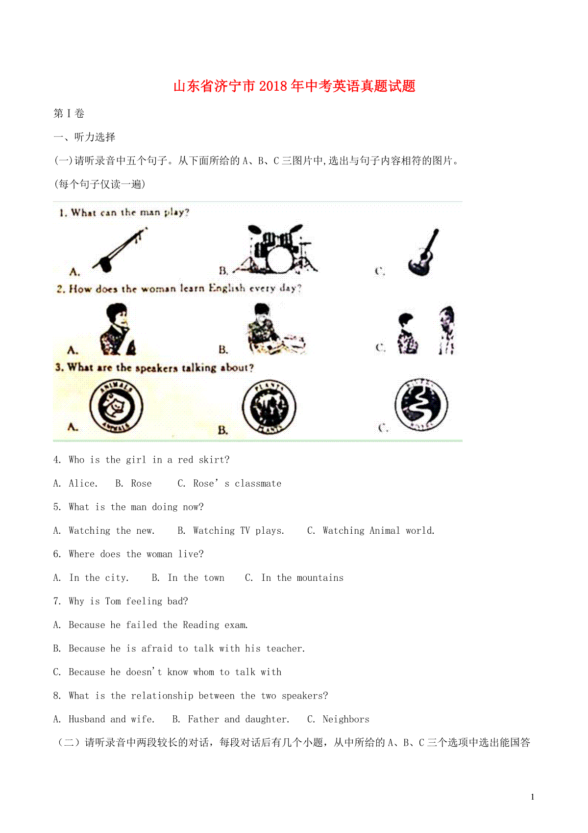1.山东省济宁市2018年中考英语真题试题(含解析)