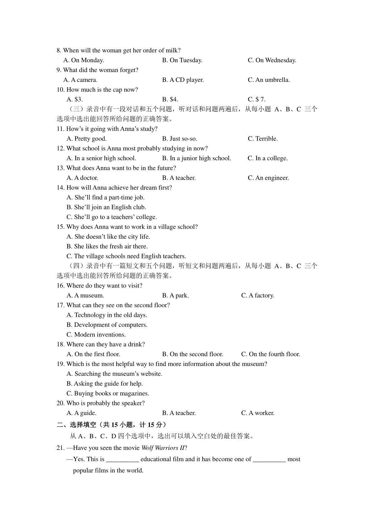 一、山东省滨州市2018年中考英语真题试题(pdf,含答案)