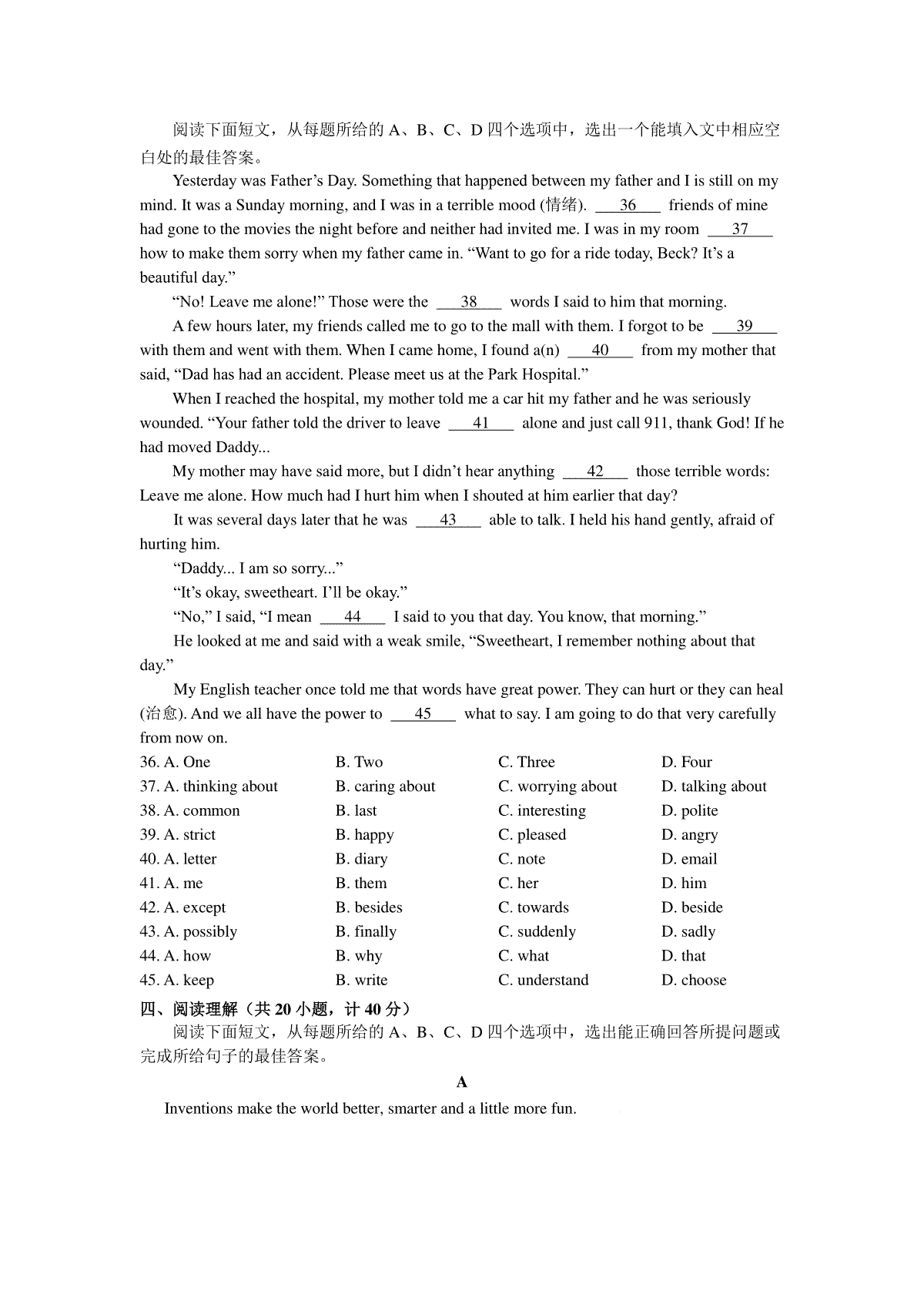 山东省滨州市2018年中考英语真题试题(pdf,含答案)于近期开考,本次考试对考生对知识的掌握参考价值大,为了方便大家复习掌握错题!小编在下文为大家准备了山东省滨州市2018年中考英语真题试题(pdf,含答案)试卷及答案解析详情,仅供考生参考。