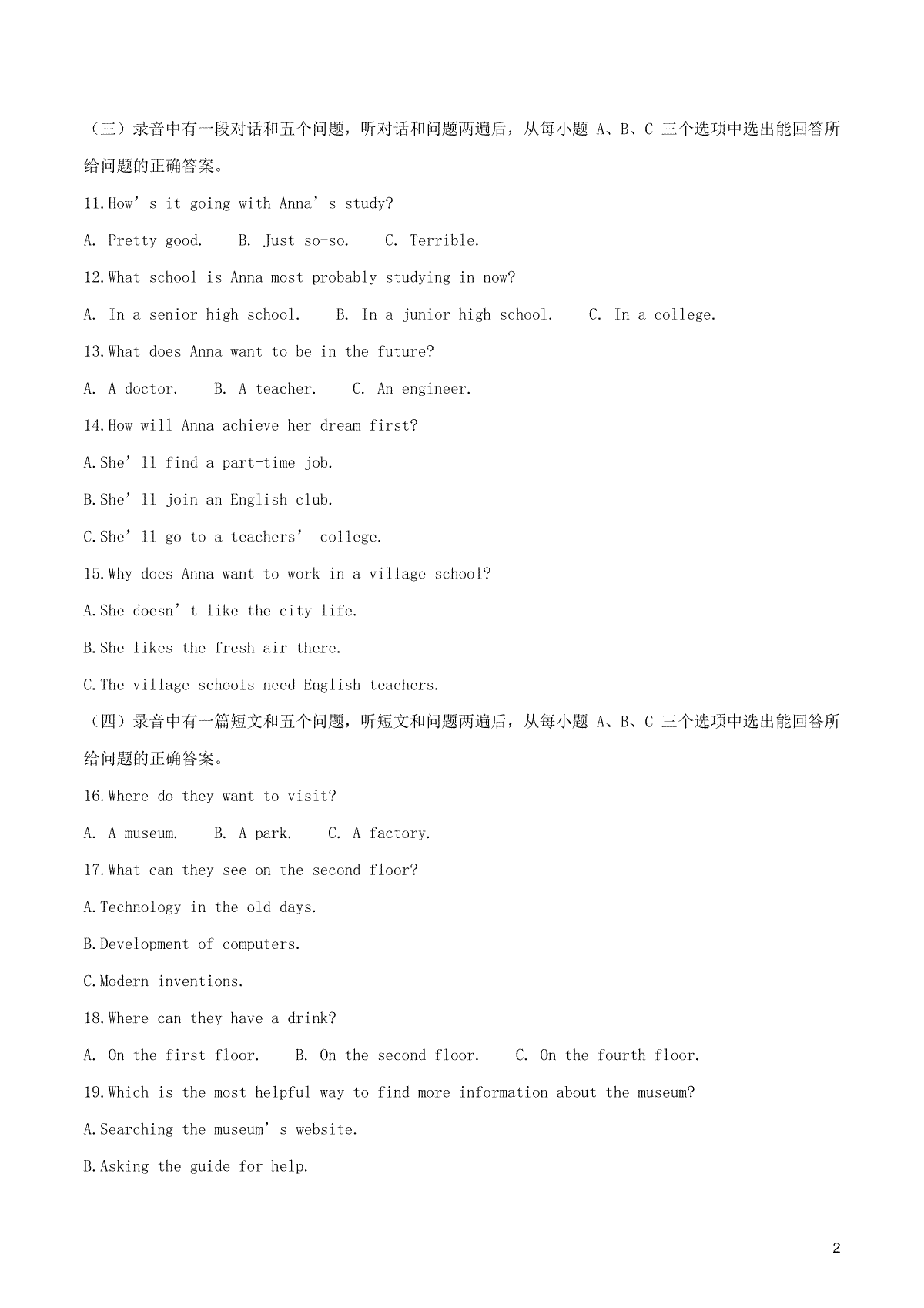 2.山东省滨州市2018年中考英语真题试题(pdf,含答案)