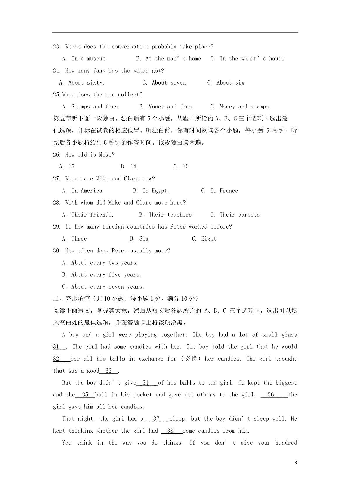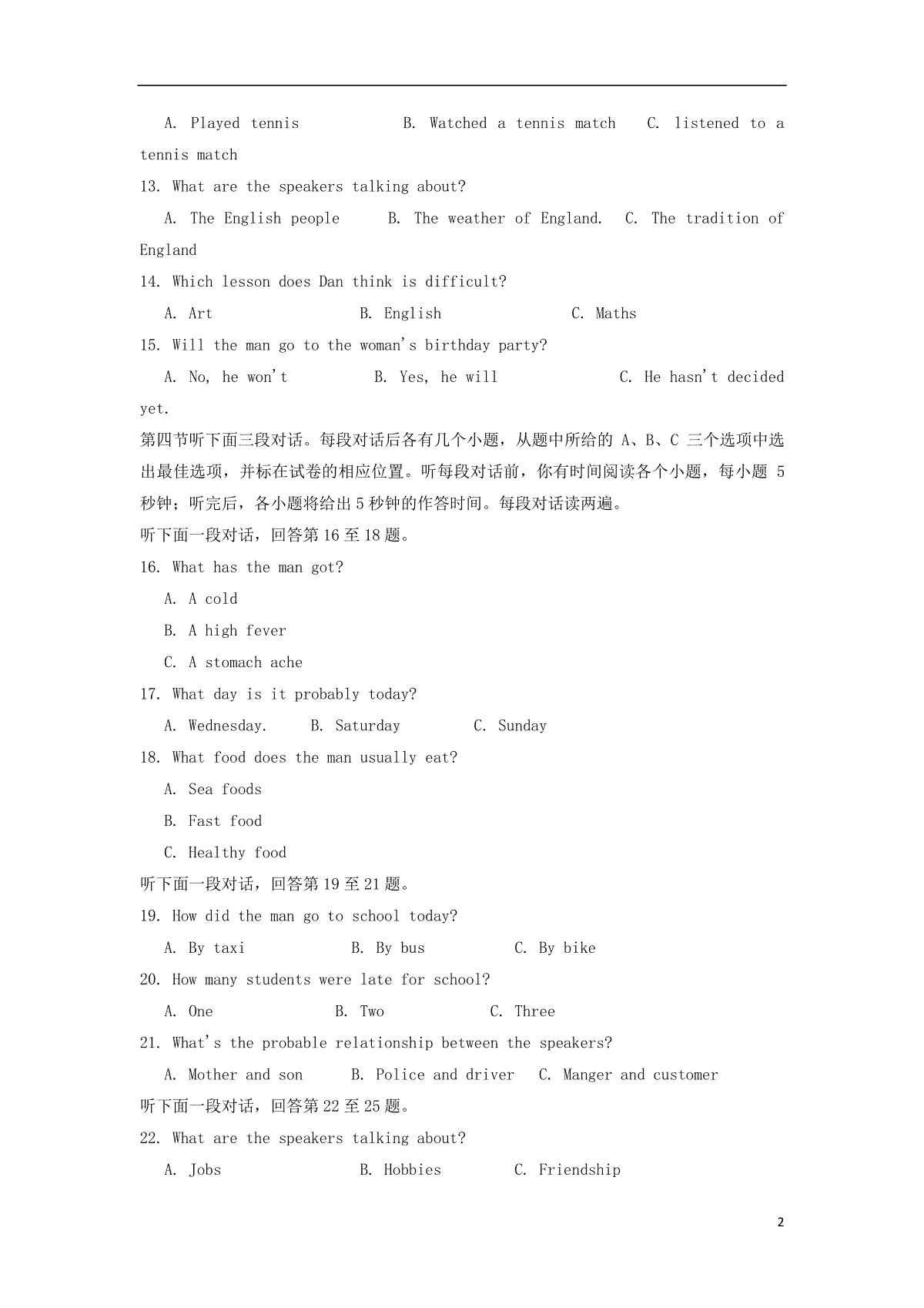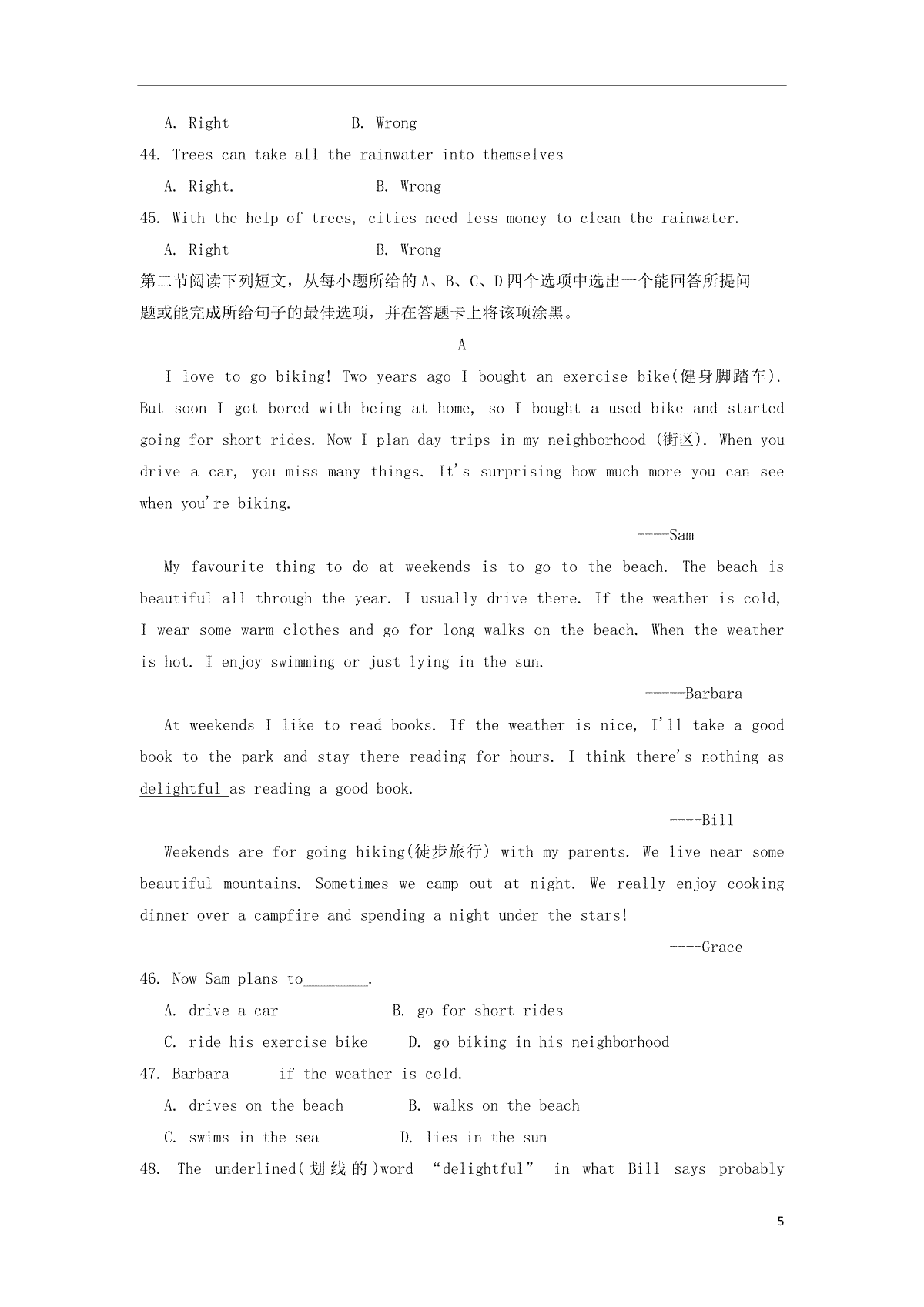 5.山东省滨州市2018年中考英语真题试题(pdf,含答案)