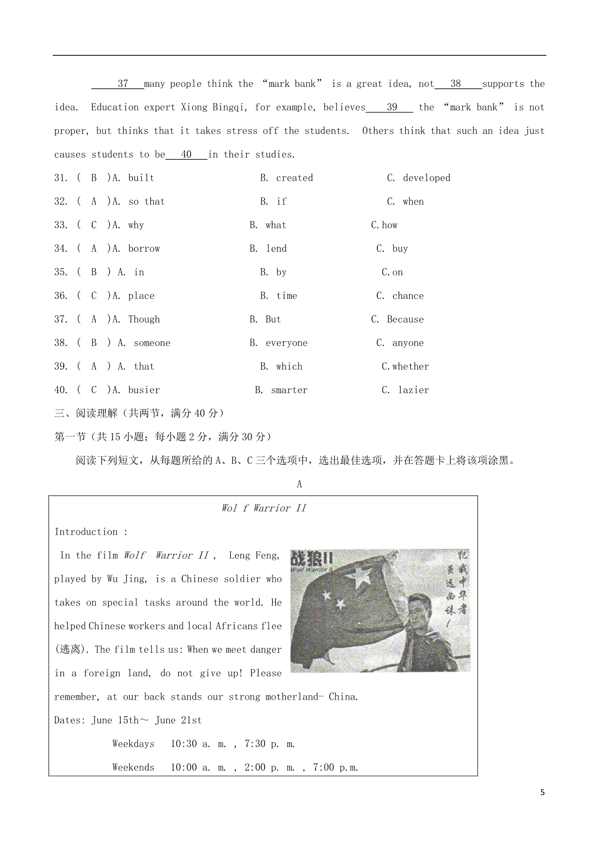 5.山东省潍坊市2018年中考英语真题试题(pdf,含解析)