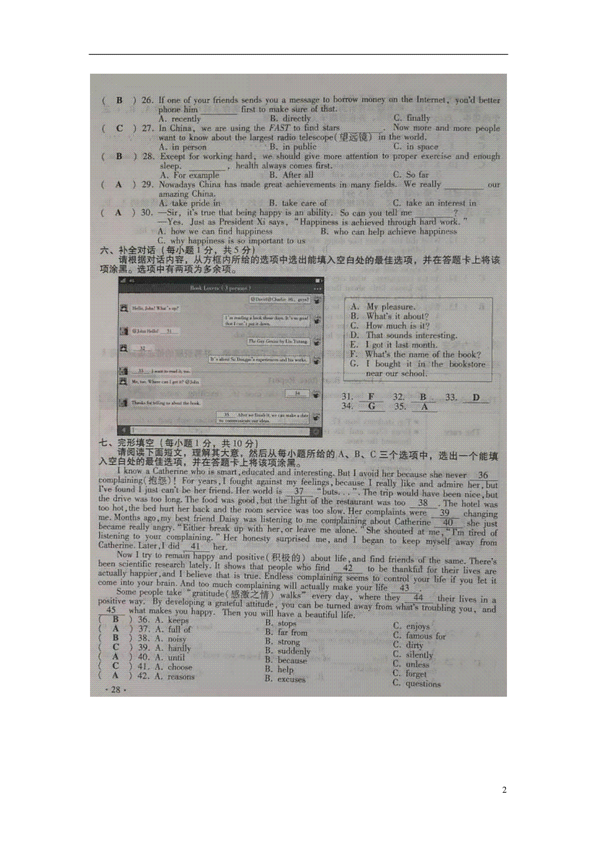 山西省2018年中考英语真题试题(扫描版,含答案)