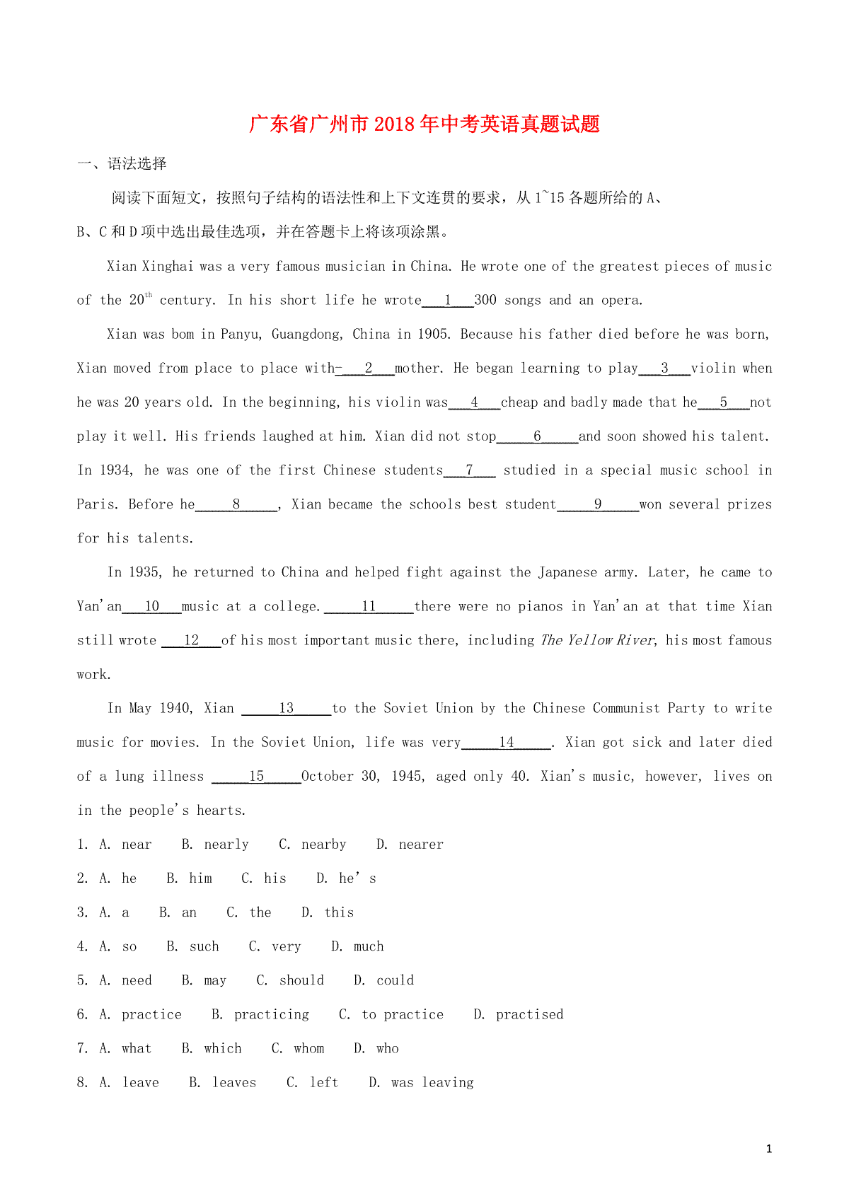 1.广东省广州市2018年中考英语真题试题(含解析1)