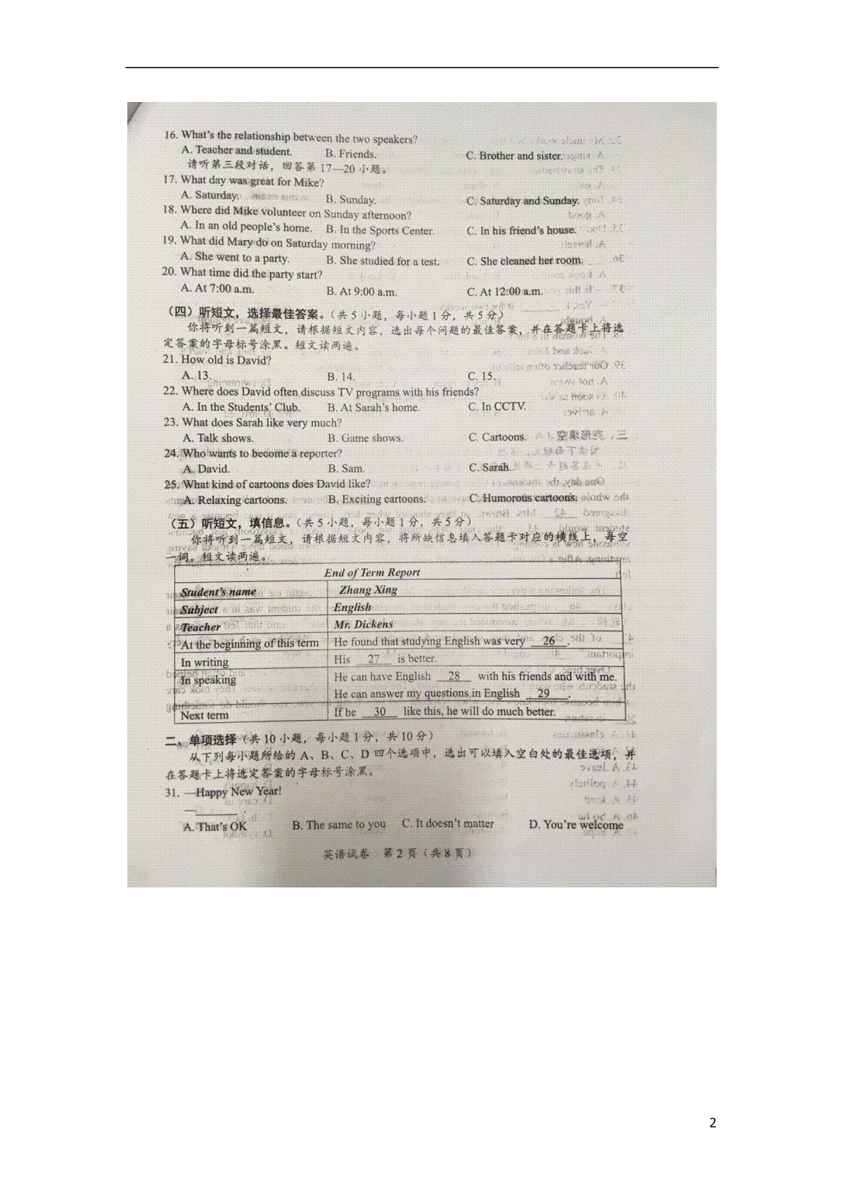 一、广西北部湾经济开发区2018年中考英语真题试题(扫描版,无答案)
